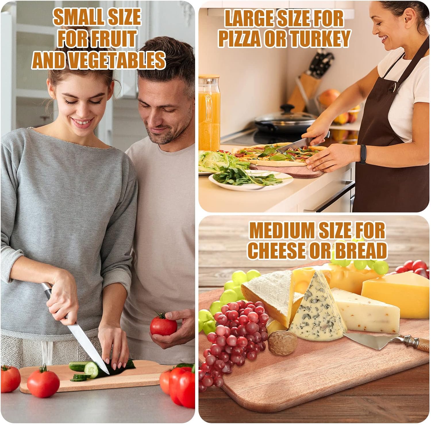 - Wide Application: enjoying nice durability, with a smooth and durable texture, these wooden cutting boards for kitchen are ideal for efficiently and cleanly cut your meat, fruits and vegetables without any trouble, and also can be served for cheese, bread, steaks or charcuterie; They are also ideal gifts for Mother's Day and housewarming parties, a versatile product for your daily using, crating a greener life to you and your family
