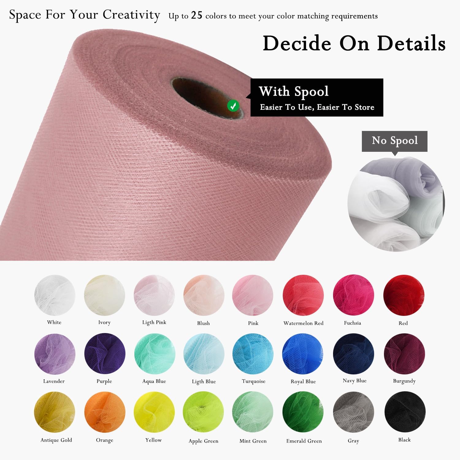 Dusty Rose Tulle Fabric Rolls 54 Inch by 40 Yards Tulle Bolt Spool for Wedding Decorations DIY Tutu Baby Shower Table Skirt Ceiling Decor Birthday Party Craft Supplies