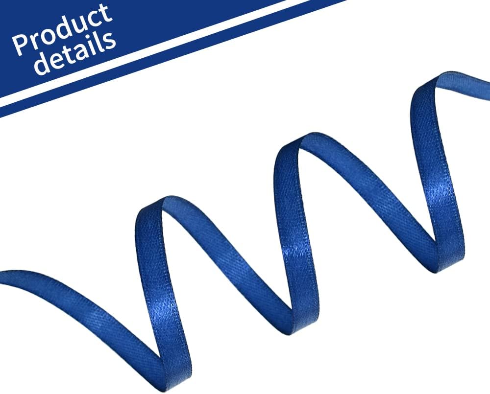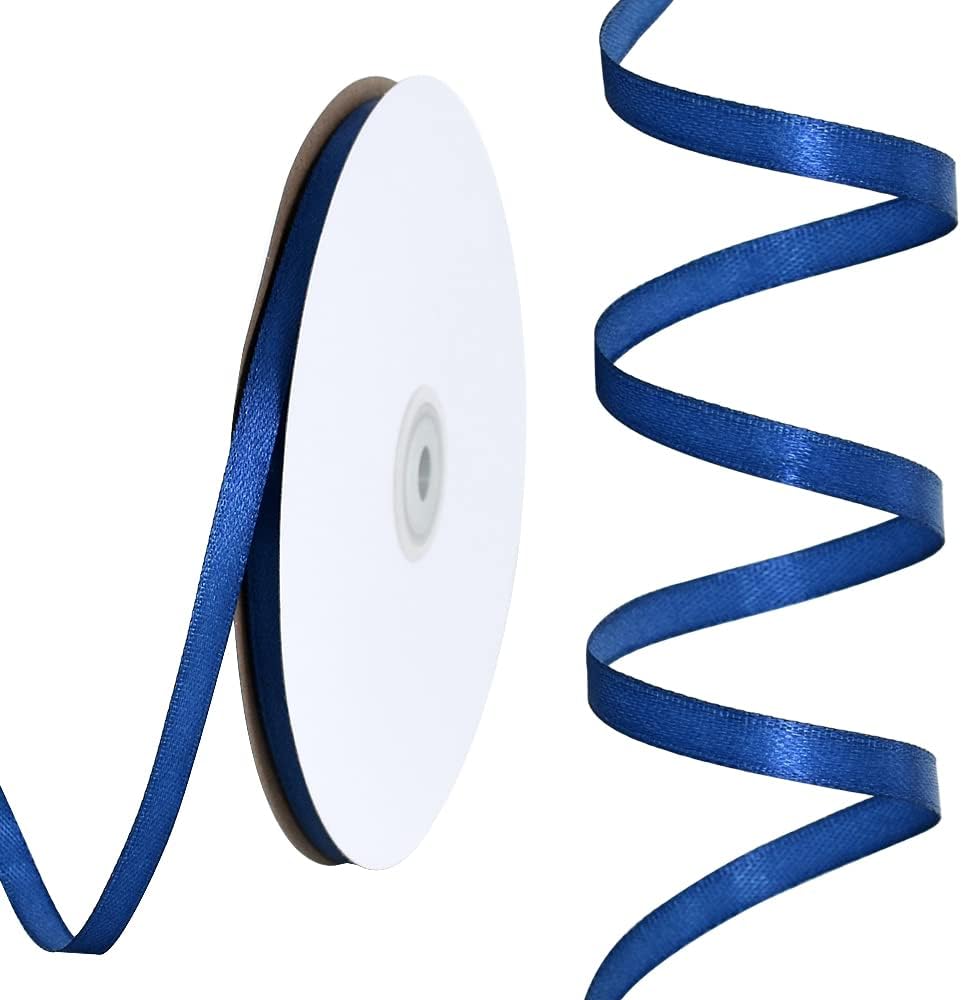 TONIFUL 1/4 Inch x 100yds Navy Blue Satin Ribbon, Thin Solid Color Satin Ribbon for Gift Wrapping, Crafts, Hair Bows Making, Wedding Party Decoration, Invitation Cards, Floral Bouquets