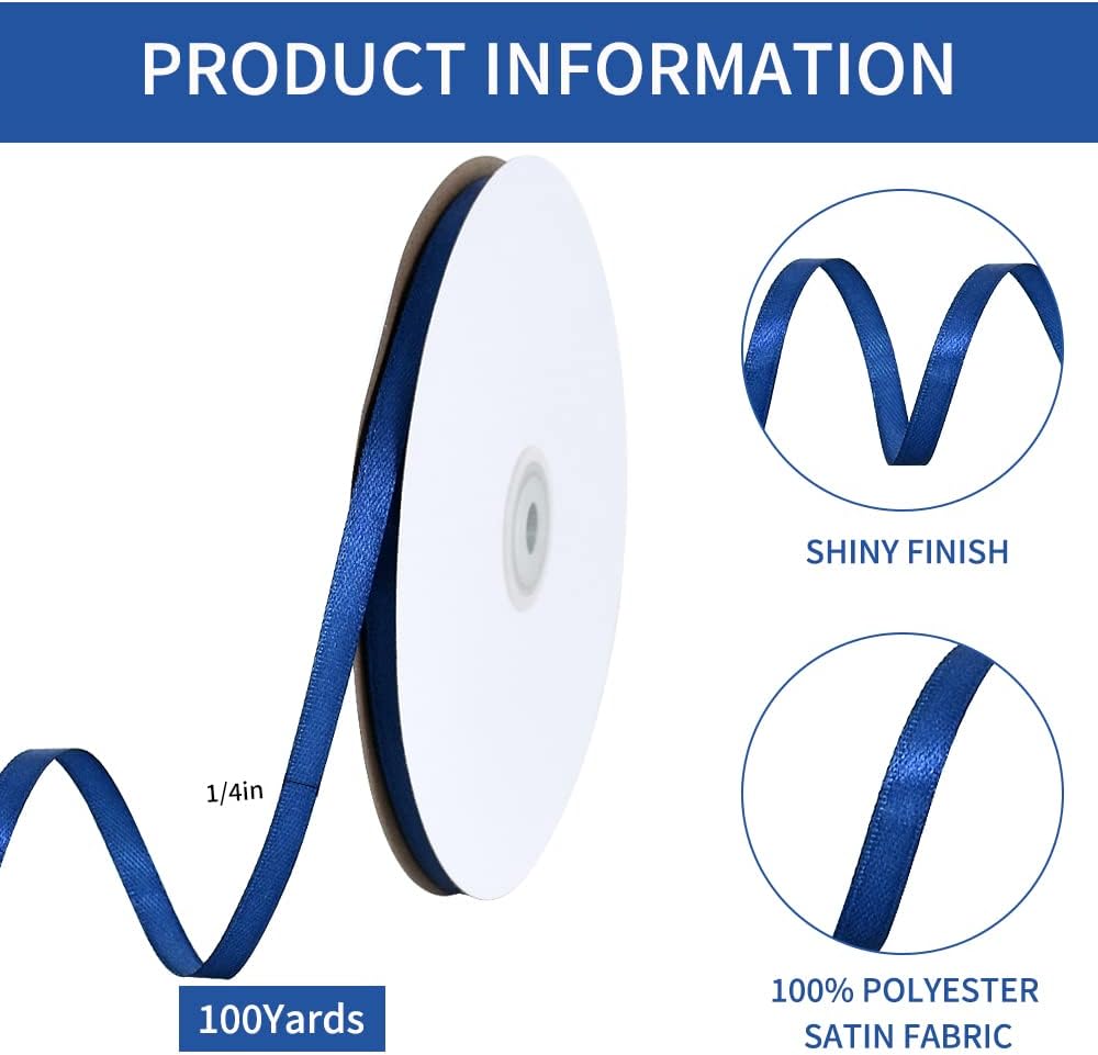 - 【1/4 INCH SATIN RIBBON】:High grade single face solid satin ribbons, 1/4 inch(6mm)wide and come in a convenient 100 yards(91m)packages. Perfact enough length to meet your needs.