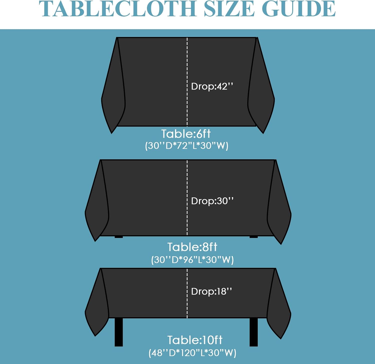- Product Size: 90*156inch black rectangular tablecloth for 6ft table and 8ft dining table, according to the effect you want to use the tablecloth, and the size of your dining table, choose the right size tablecloth