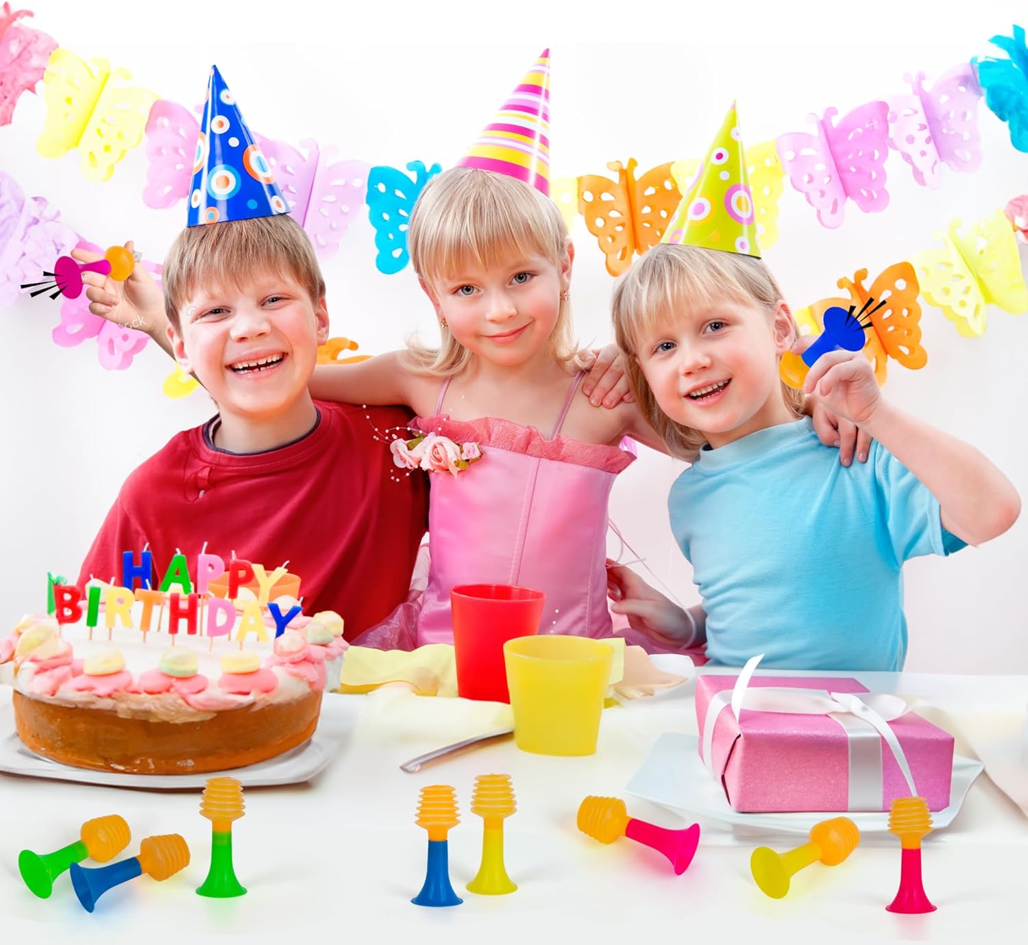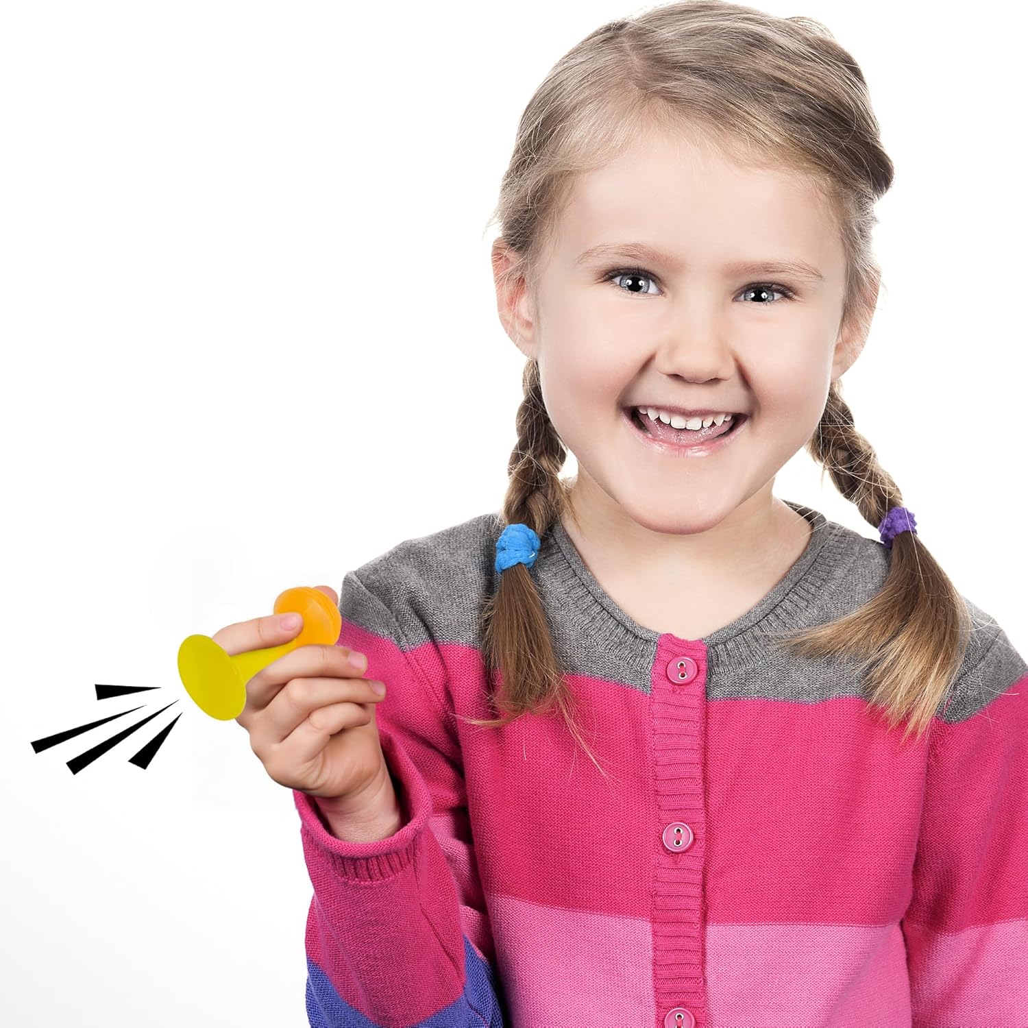 - MADE FOR SHARING: Since you won’t have to use your mouth, you can easily pass these noise making toys around the group. High-quality plastic trumpet also adds a serving of durability to keep up with all the enthusiasm.