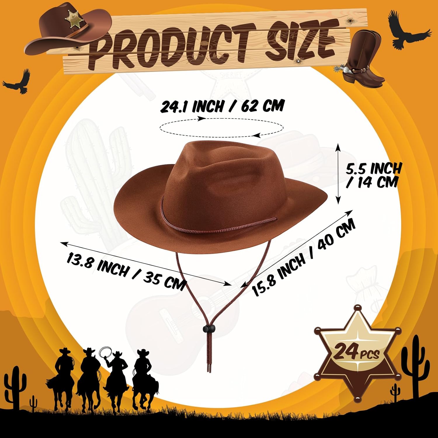 Mepase 24 Pieces Disposable Plastic Western Cowboy Hat Set Felt Wide Brimmed Cowgirl Hats for Men Women Costume Party(Brown)