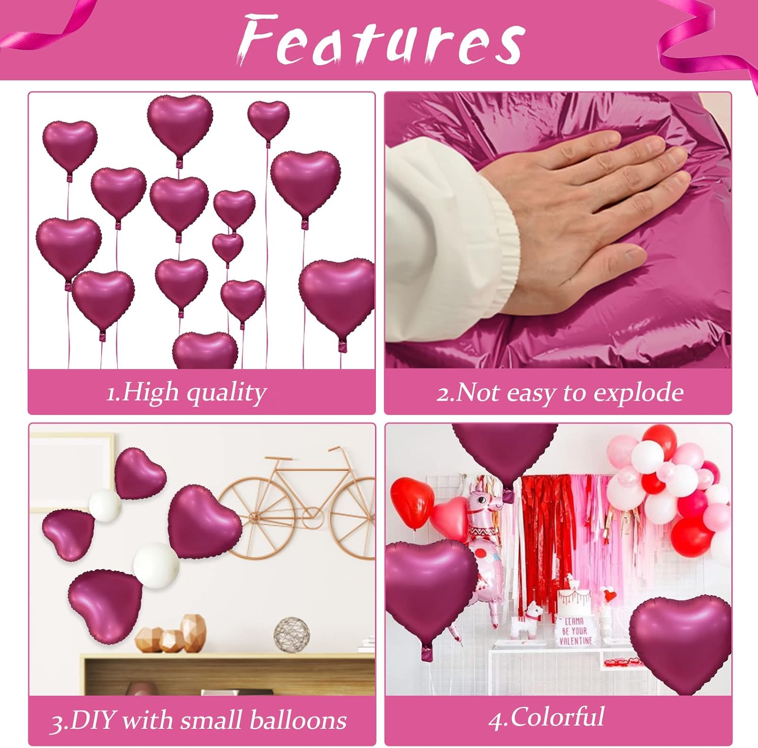 - π 10 PCS PINK FOIL HEART BALLOONS: Package contains 10 x 18 inch hot pink heart balloons, 1 x 10m ribbon.The hot pink heart shape balloons are specially shaped, the perfect size for your holiday or party decorating needs, together create a fun and surprising party, leave an unforgettable smile!