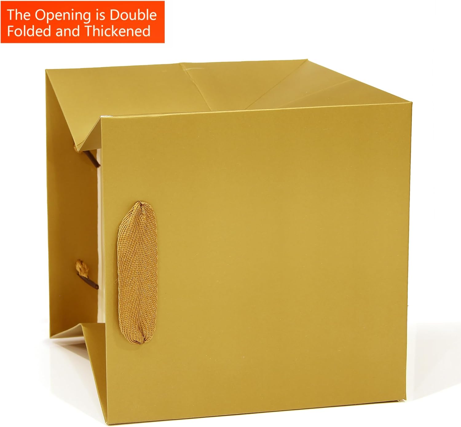 Gold Paper Gift Bag Small Square Bottom Paper Bags with Handles(Gold, 6 x 6 x 6 in, 10 CT)