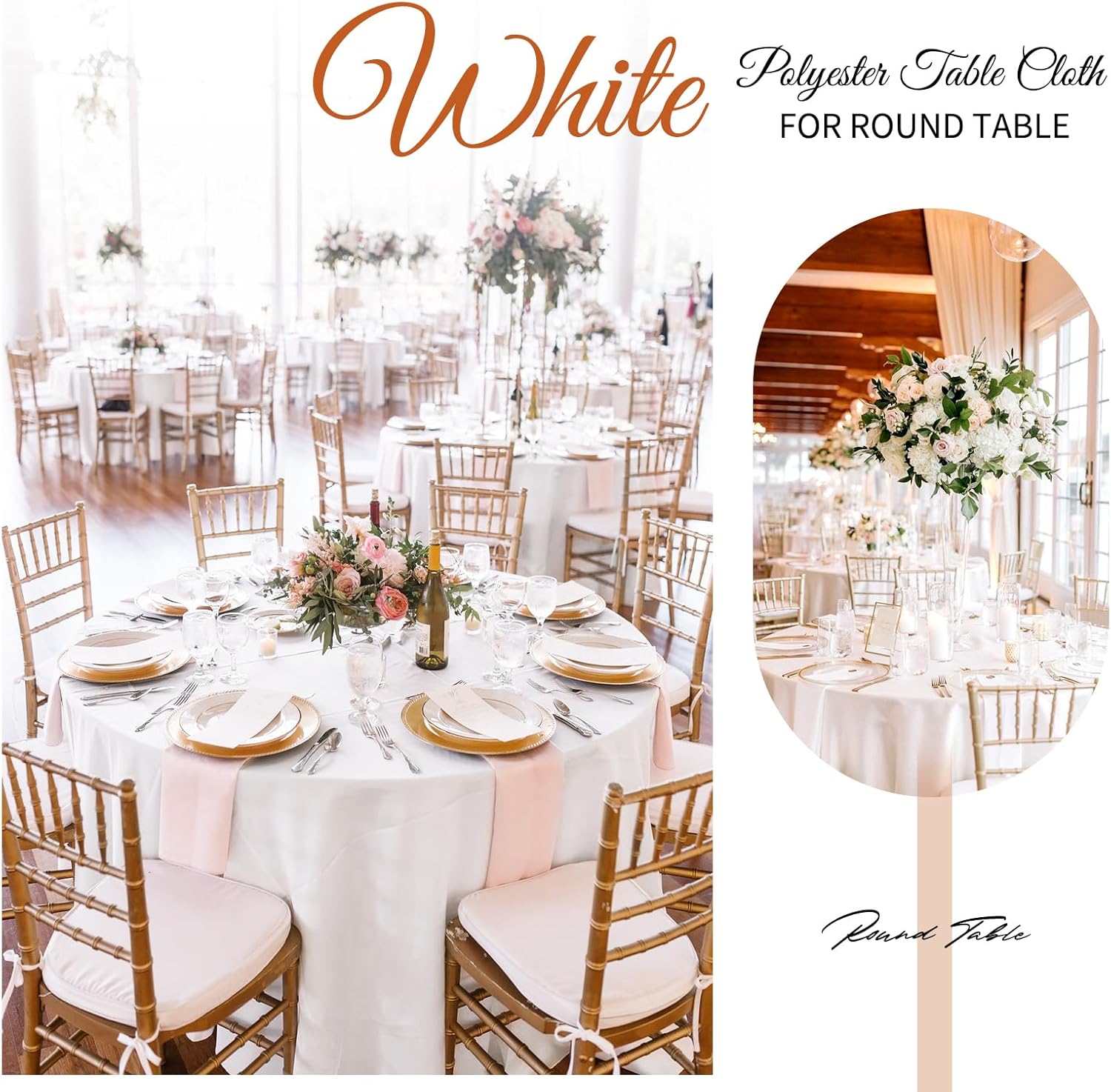 - 【Size】This White polyester table cloth diameter is 120 Inch, for standard 8ft(96inch) round table, providing 12 inch drop, If your round table is 6ft(72inch), providing 24 inch drop. We can provide the following sizes:Rectangular: 60" x 102", 60" x 126", 70" x 144", 90" x 132",90" x 156". Round: 60", 90", 108", 120".Please measure the size of your table before purchasing.