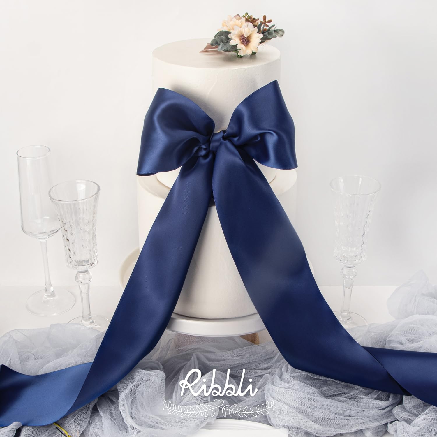Ribbli Navy Satin Ribbon 4 Inch Wide Navy Ribbon for Wedding Chair Sash Grand Opening Ceremony Big Bows Gift Wrapping Floral Crafts Cake Decor-Double Faced Satin Continuous 10 Yards