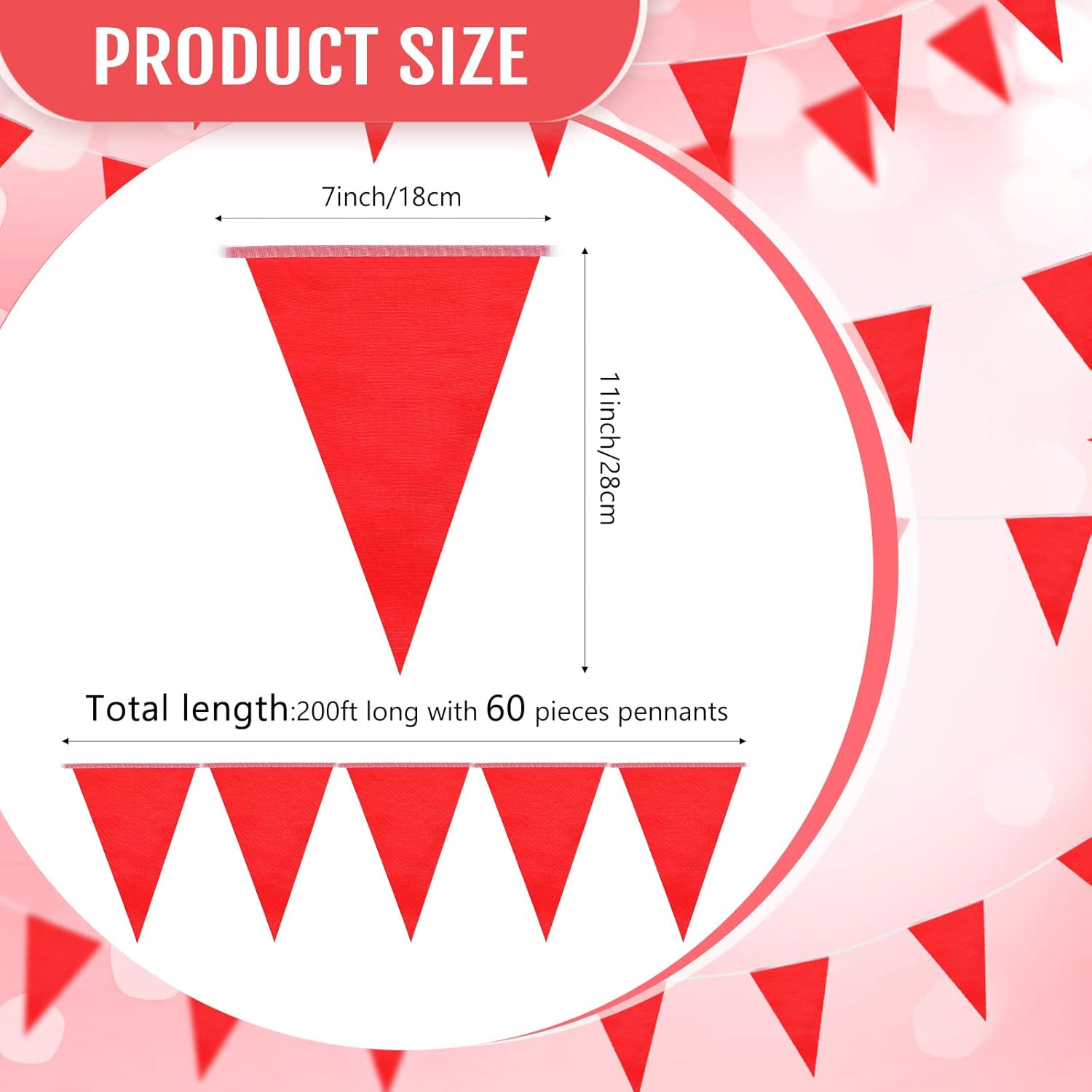 - What You Will Get: you will get 1 string of banner party decoration, about 200 ft/ 60 m in length, long enough so that you can hang it in most places you want; And also it is equipped with 120 triangle flags, which are available in red, measuring about 11 x 7 inches/ 30 x 18 cm