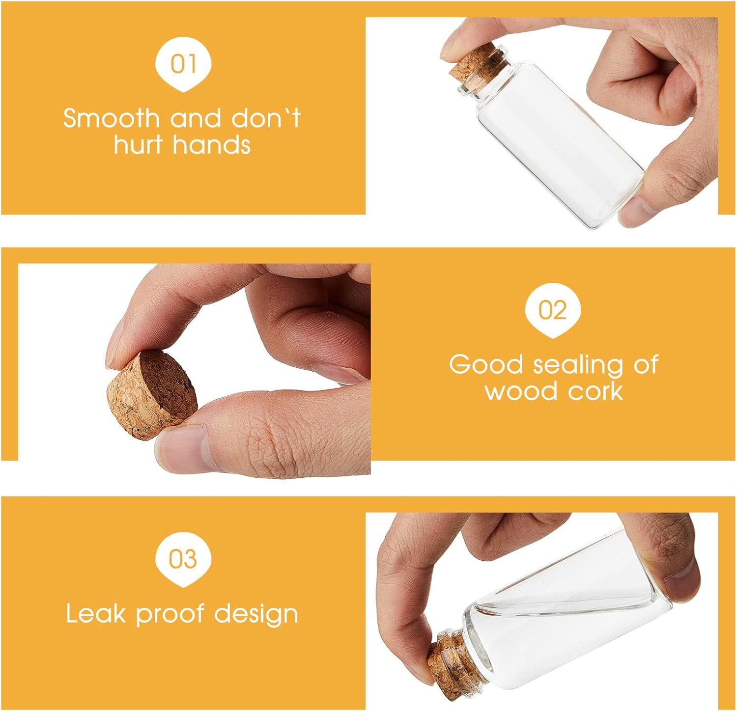 - Enjoy the Happiness of DIY: you can put some flower seeds, spices, sweets, bath salts, wishing scrips and other items in the small glass jars, these bottles are designed with corks, leakproof and safe, you can fully enjoy the happiness of DIY