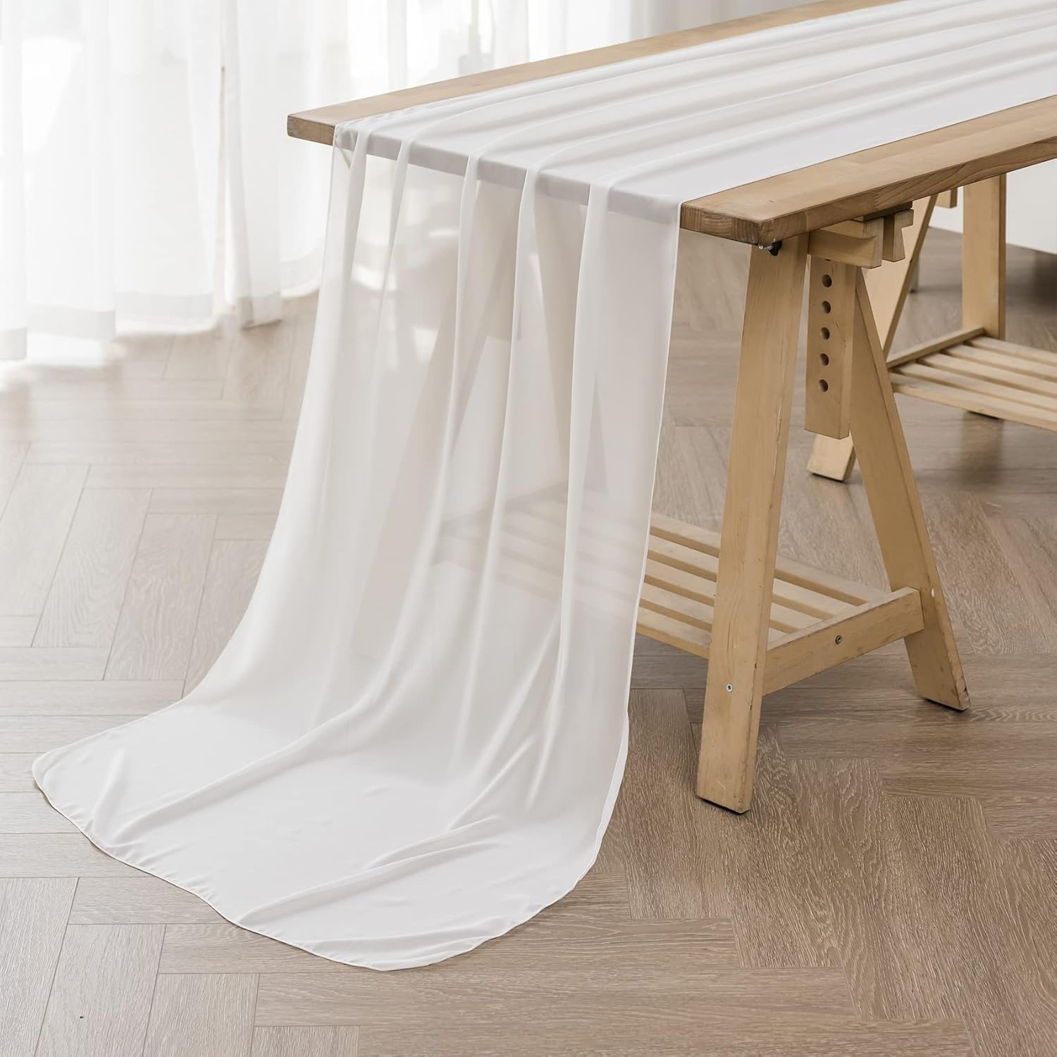 - Style:This colorful chiffon table runner has a flowy and elegant look,tie this romantic white sheer table runner up to create beautiful folds or leave it flowing loose onto the floor,add a luxurious feel to your special events.