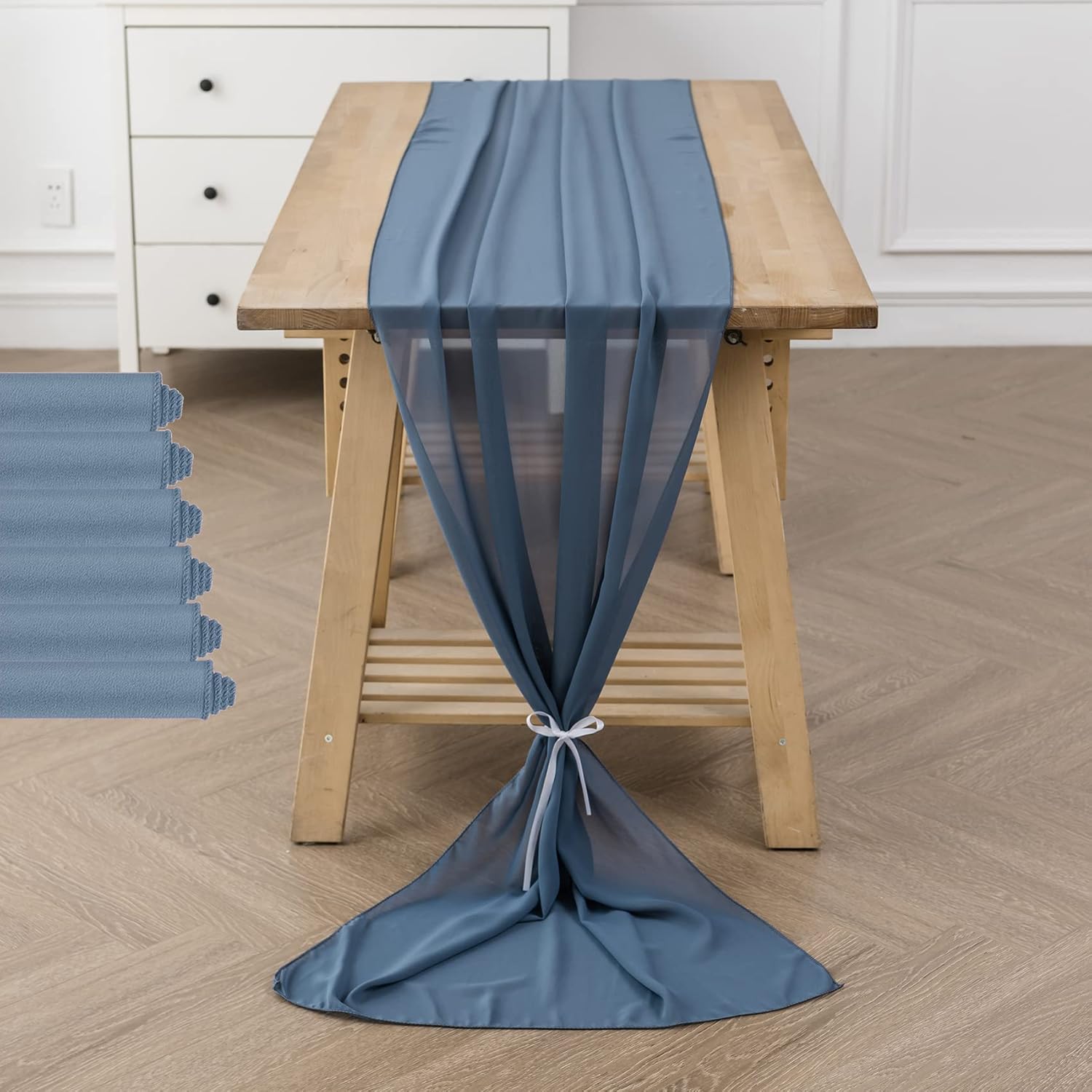 6Pack 9ft Chiffon Table Runner 14x108 Inch Sheer Romantic Table Runner for Wedding Birthday Party Bridal Shower Outdoor Decoration-Dusty Blue