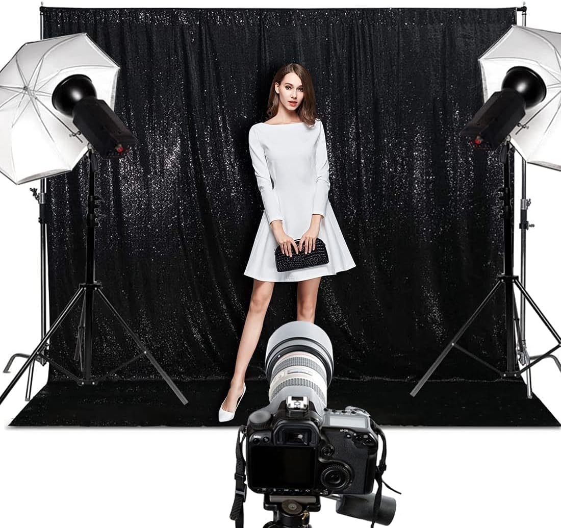 - 【Black Sequin Backdrop Curtain】Package contains 1Pc 8ft width by 10ft height thick satin sequin backdrop!
