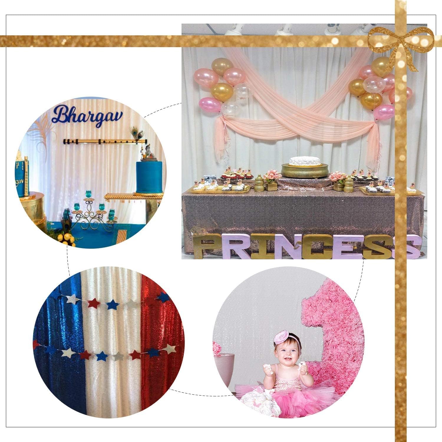 - 【Multiple Application Backdrop】This shiny sequin backdrop is Ideals choice of Wedding, birthday parties, baby shower, Christmas, Halloween and more.
