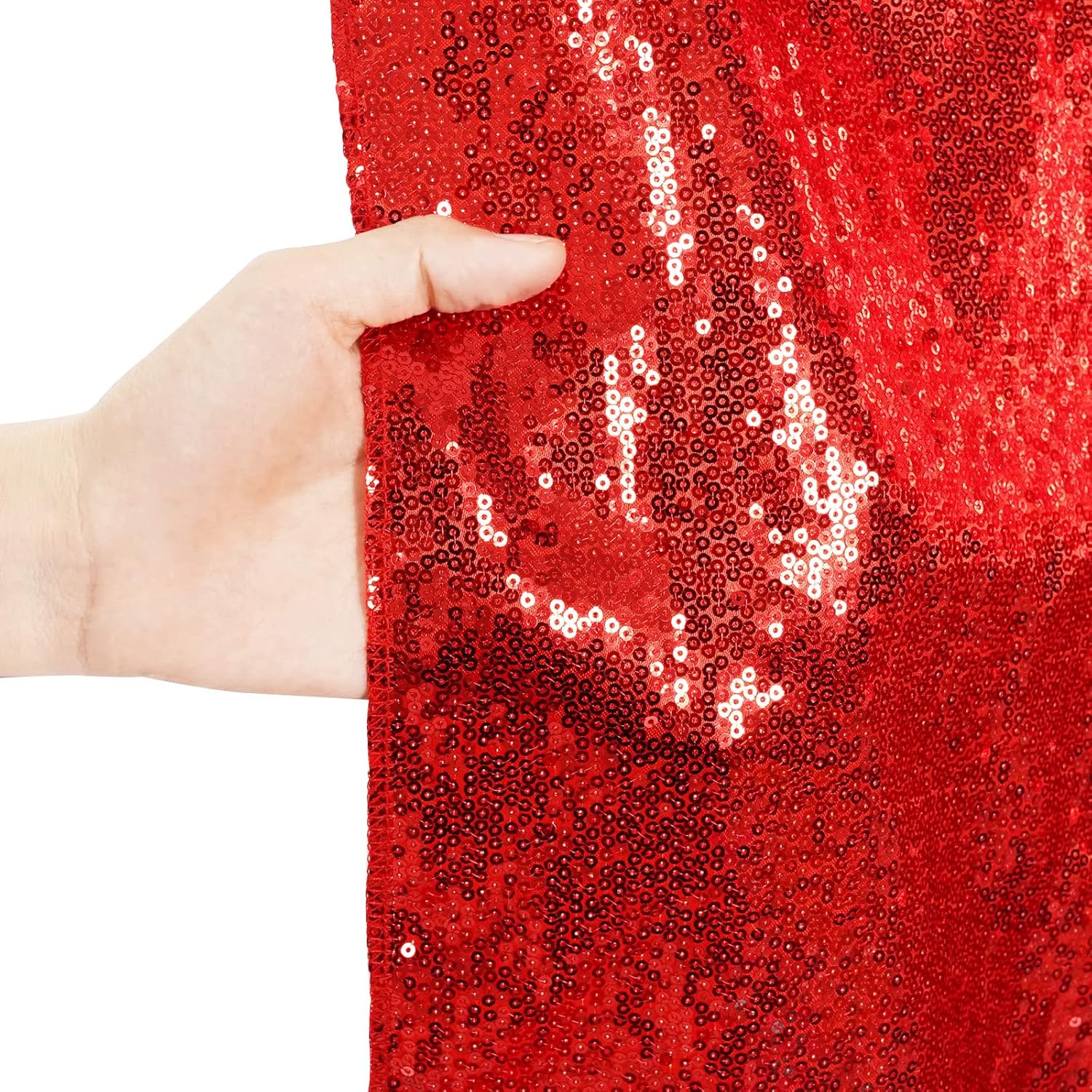 Poise3EHome 10Ft x 10Ft Red Sequin Backdrop, Glitter Thick Satin Sequin Background Drapes, Sequence Xmas Thanksgiving Backdrop for Wedding Party Holiday Festival Decor