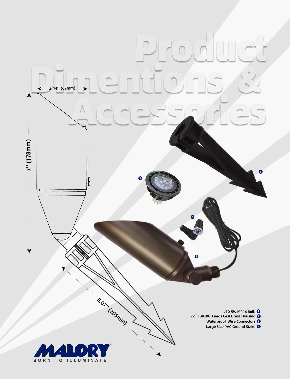 - LIFETIME WARRANTY:MALORY landscape lighting are built to the highest standards of construction and performance, we extends an industry-best lifetime warranty on its brass fixtures and 50,000 hrs for the LED bulbs.Please contact us if you have any issue, we will offer top rated customer service for you.