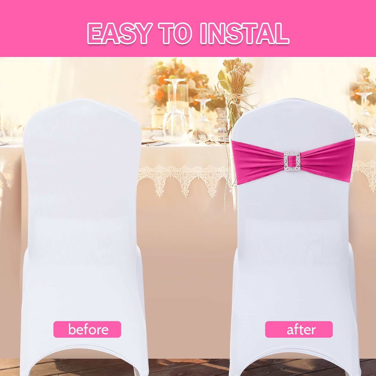 Joccun 120 PCS Spandex Chair Sashes Bows Stretch Chair Cover Band with Buckle Slider Universal Elastic Chair Ties for Wedding Banquet Party Event Decoration (Fuchsia)