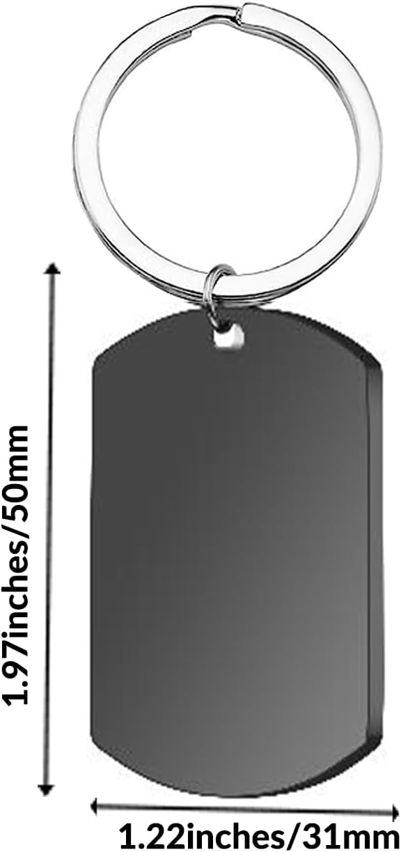 - ● HIGH QUALITY - Material Stainless Steel, using advanced laser technology to engrave patterns and text on stainless steel surface, not easy to fade, wear or tarnish. The size of the stainless steel tag is 50mm high x 28mm wide, and the key ring radius is 28mm.Order Comes with a Gift Box.
