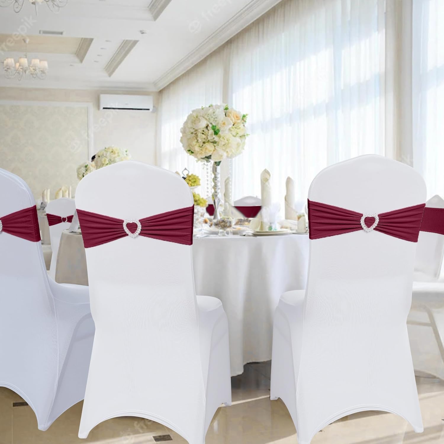 Howhic Pack of 120 Spandex Chair Sashes Bows Stretch Chair Cover Band with Buckle Slider Universal Elastic Chair Ties for Wedding Banquet Party Event Decoration (Burgundy)