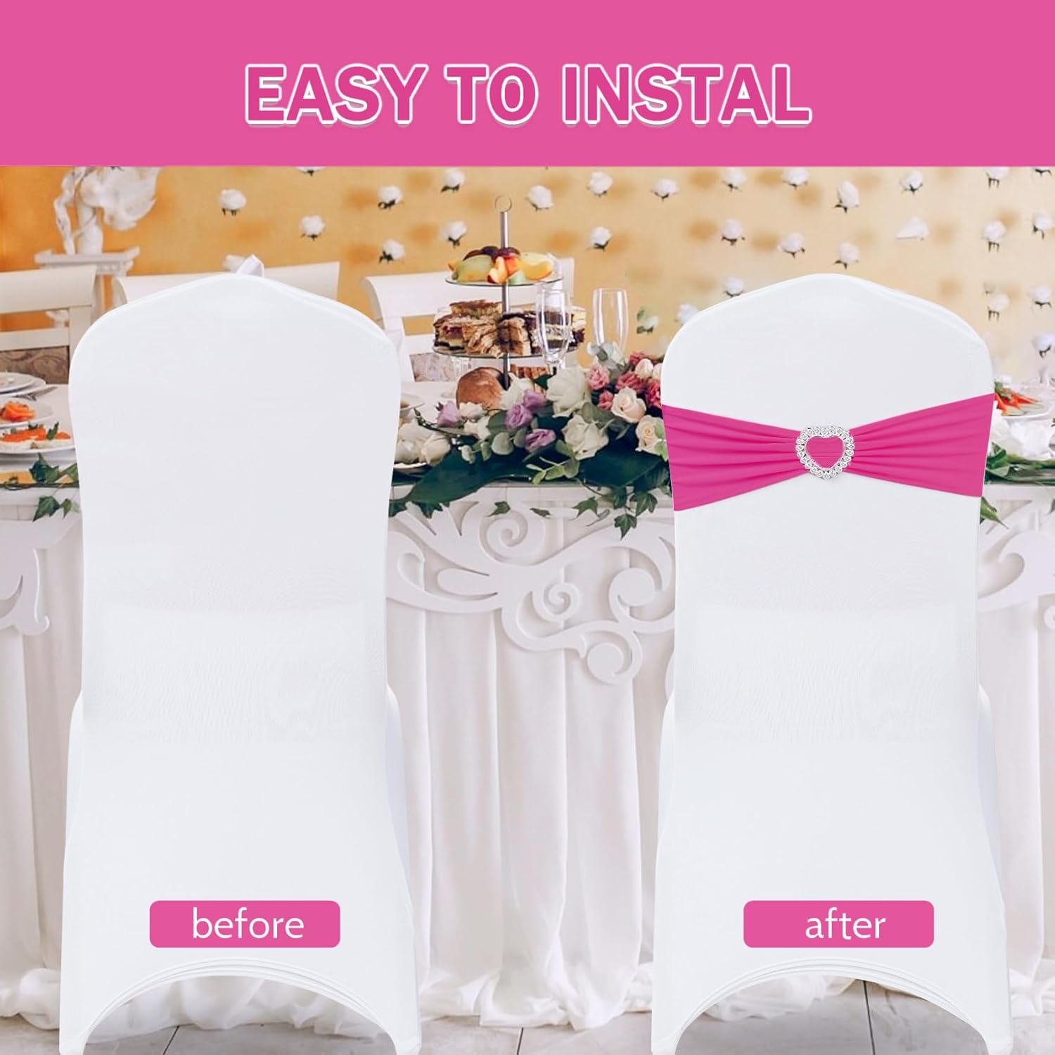 Howhic Pack of 120 Spandex Chair Sashes Bows Stretch Chair Cover Band with Buckle Slider Universal Elastic Chair Ties for Wedding Banquet Party Event Decoration (Fuchsia)