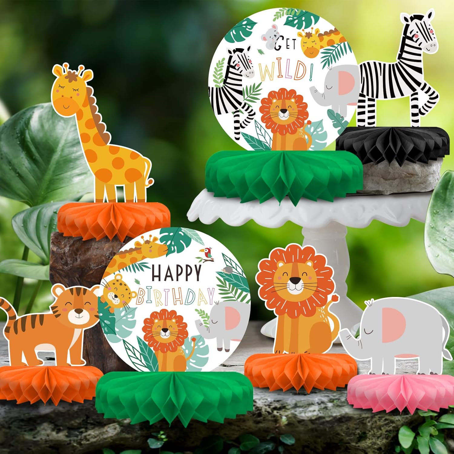 - This party pack includes 8 pieces of Honeycomb Centerpiece decorations in 8 diverse styles centering on Jungle Animals