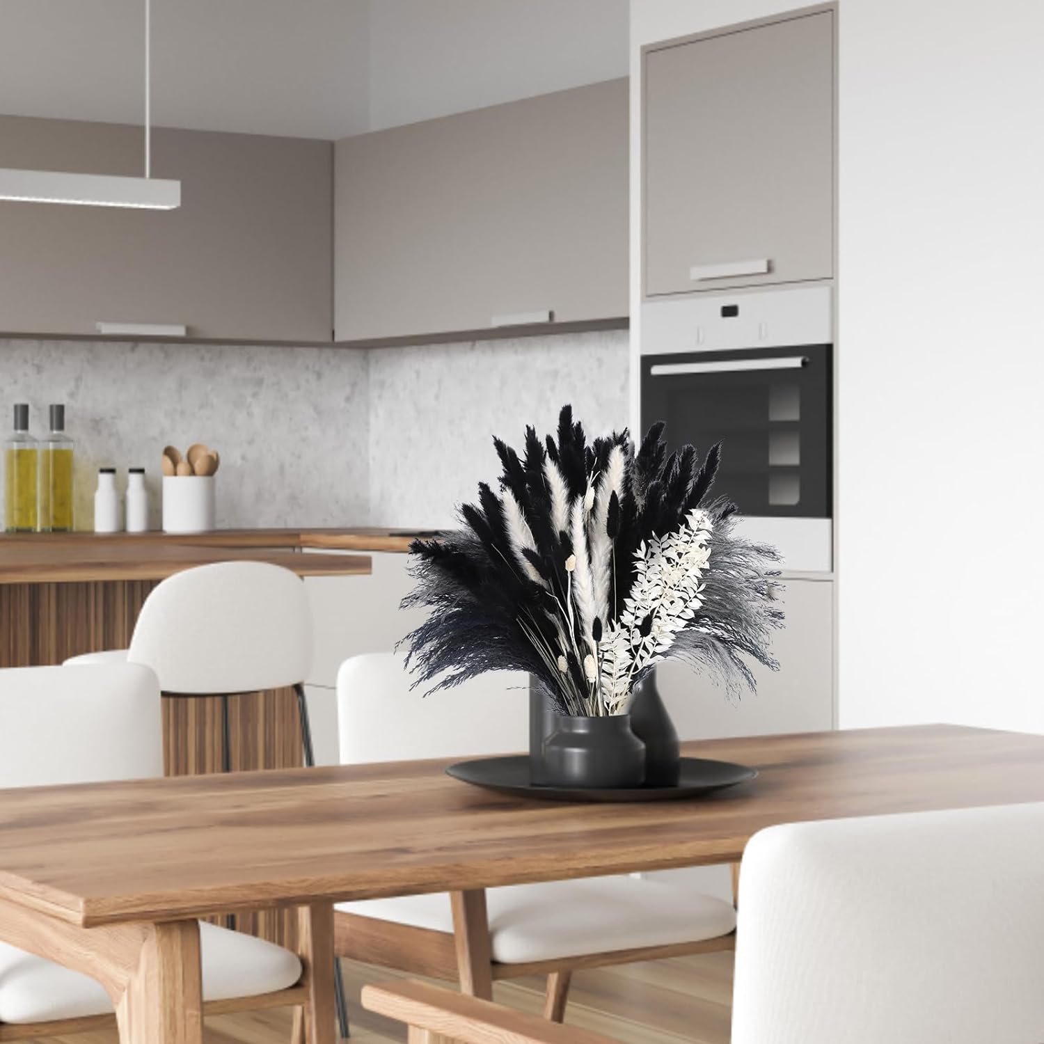 102PCS Black Pampas Grass Decor, Grey White Natural Dried Pampas Grass Bulk, Boho Home Decor Bouquet, Black and White Dried Flowers Decor, Halloween Wedding Floral Arrangements Vases Decorations
