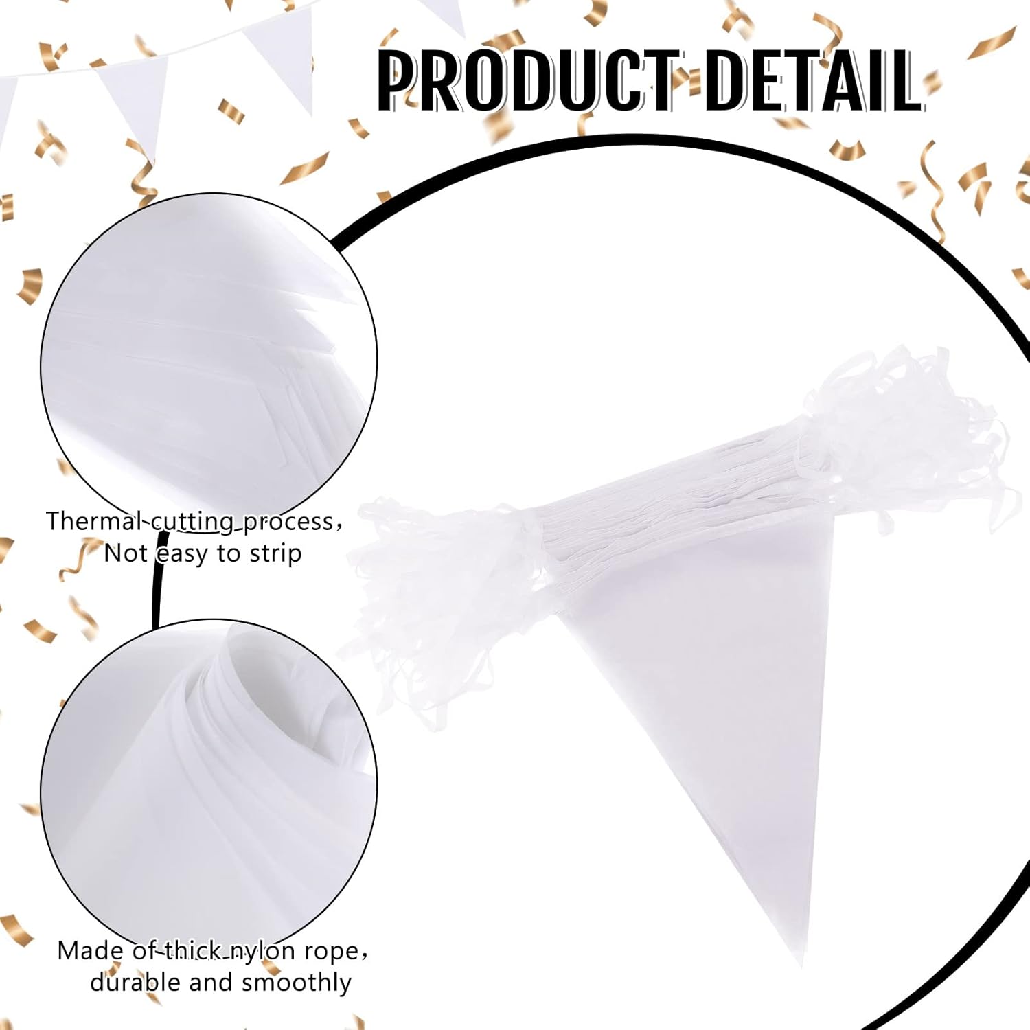 - What You Will Get: you will get 1 string of banner party decoration, about 200 ft/ 60 m in length, long enough so that you can hang it in most places you want; And also it is equipped with 120 triangle flags, which are available in white, measuring about 11 x 7 inches/ 30 x 18 cm