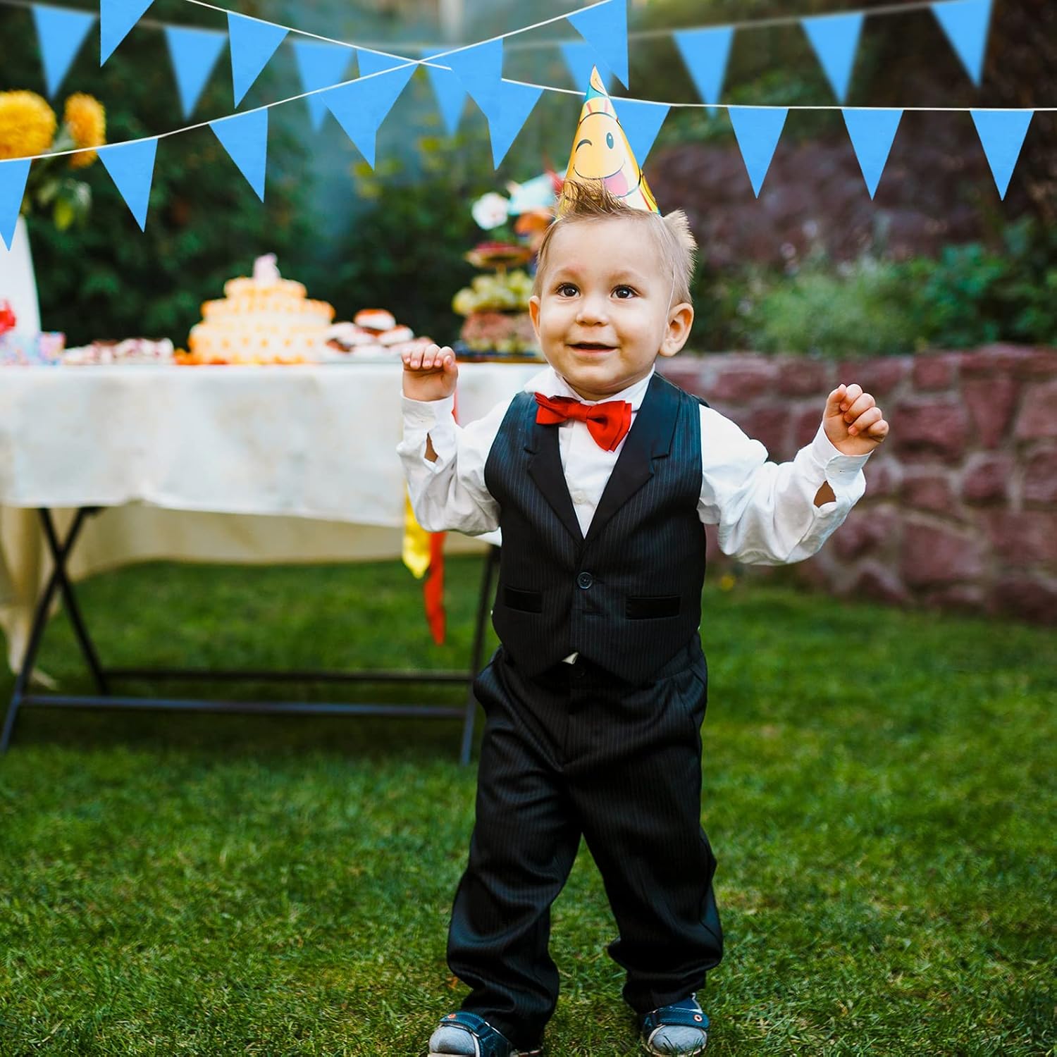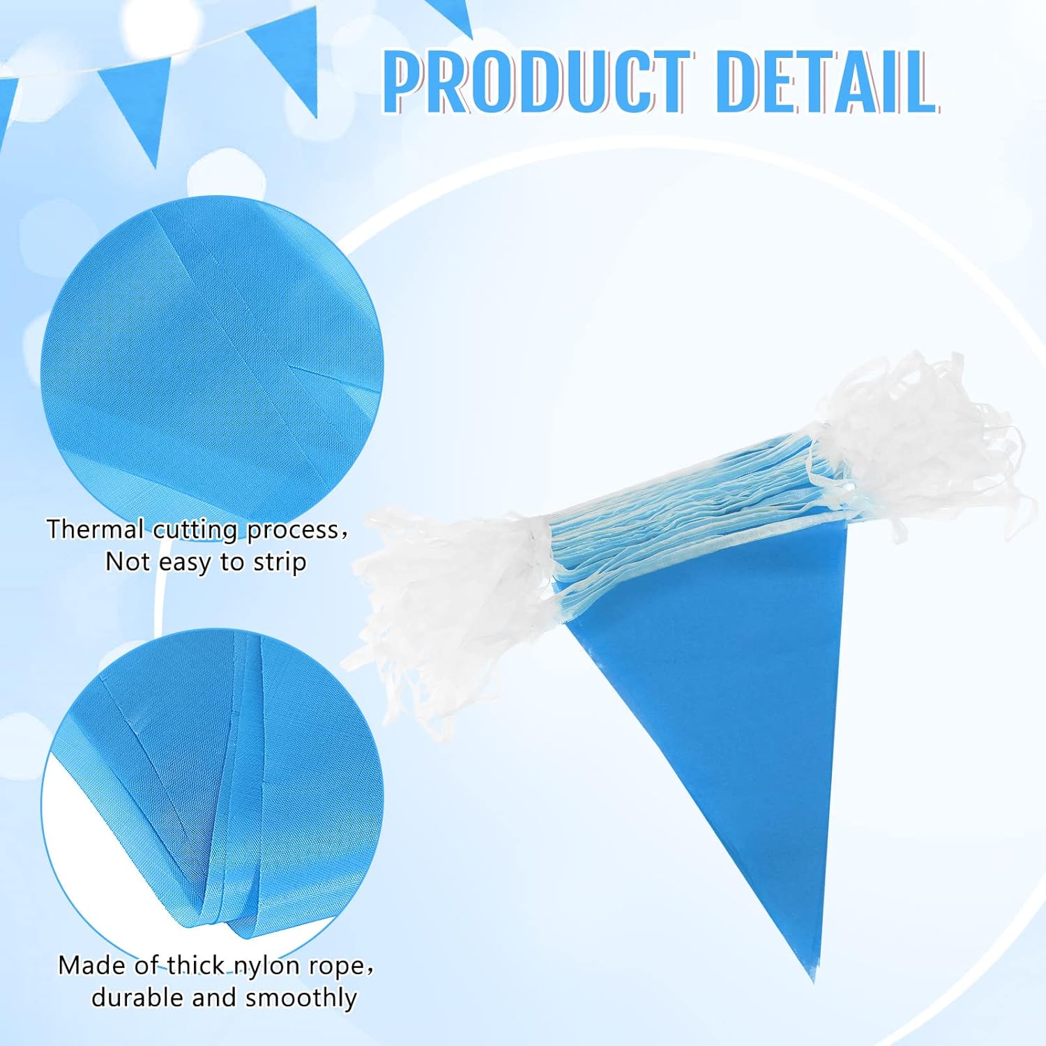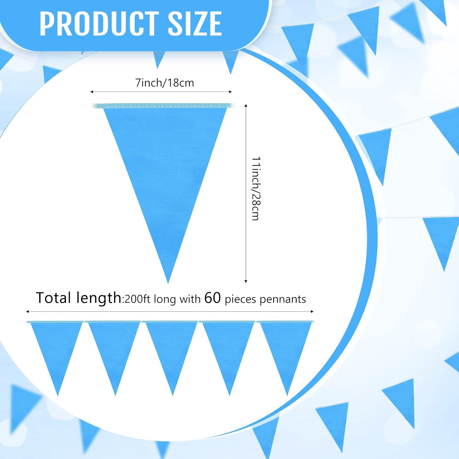 - What You Will Get: you will get 1 string of banner party decoration, about 200 ft/ 60 m in length, long enough so that you can hang it in most places you want; And also it is equipped with 120 triangle flags, which are available in blue, measuring about 11 x 7 inches/ 30 x 18 cm