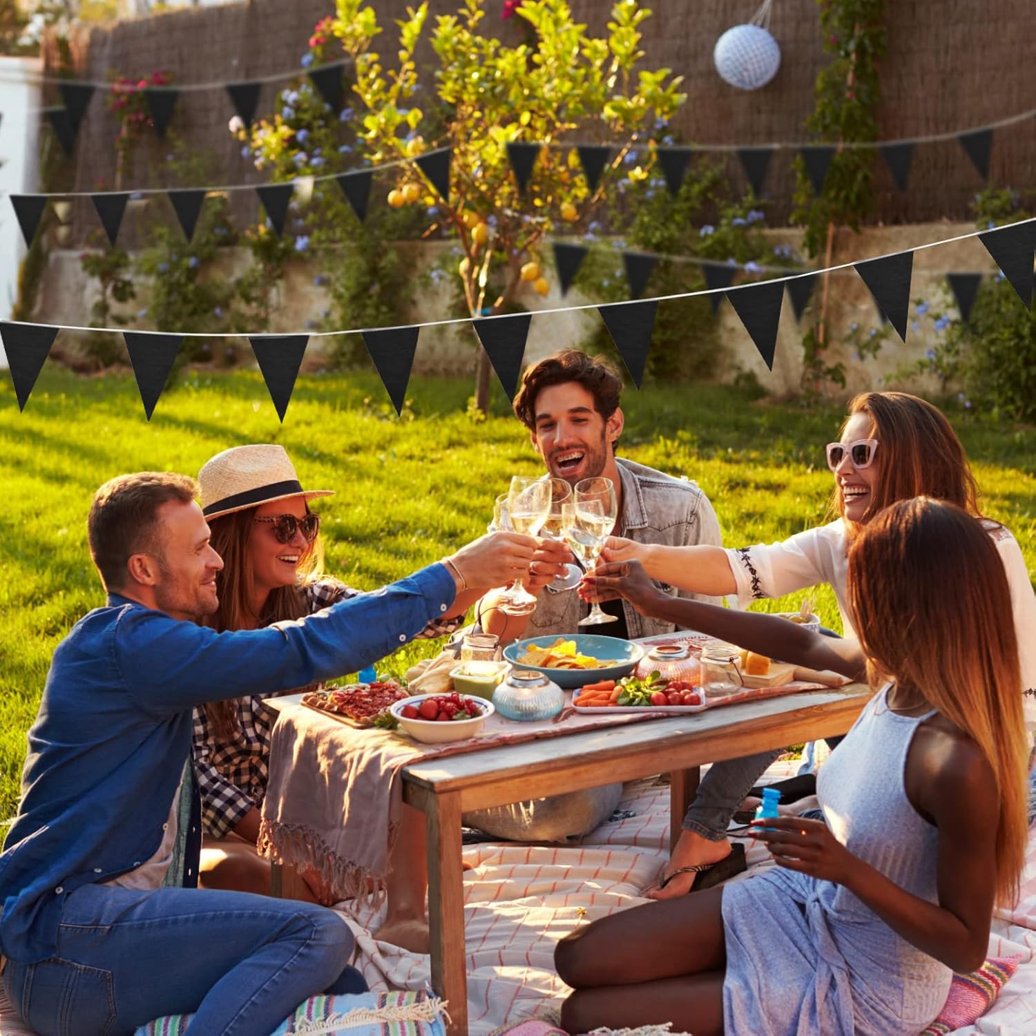 - What You Will Get: you will get 1 string of banner party decoration, about 200 ft/ 60 m in length, long enough so that you can hang it in most places you want; And also it is equipped with 120 triangle flags, which are available in black, measuring about 11 x 7 inches/ 30 x 18 cm