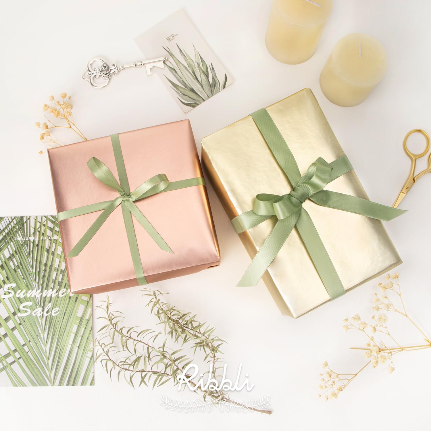 Ribbli Dusty Sage Satin Ribbon Double Faced Satin 1/2 Inch x Continuous 25 Yards-Sage Green Ribbon for Gift Wrapping Crafts Wedding Decoration Bows Bouquet Floral Arrangement