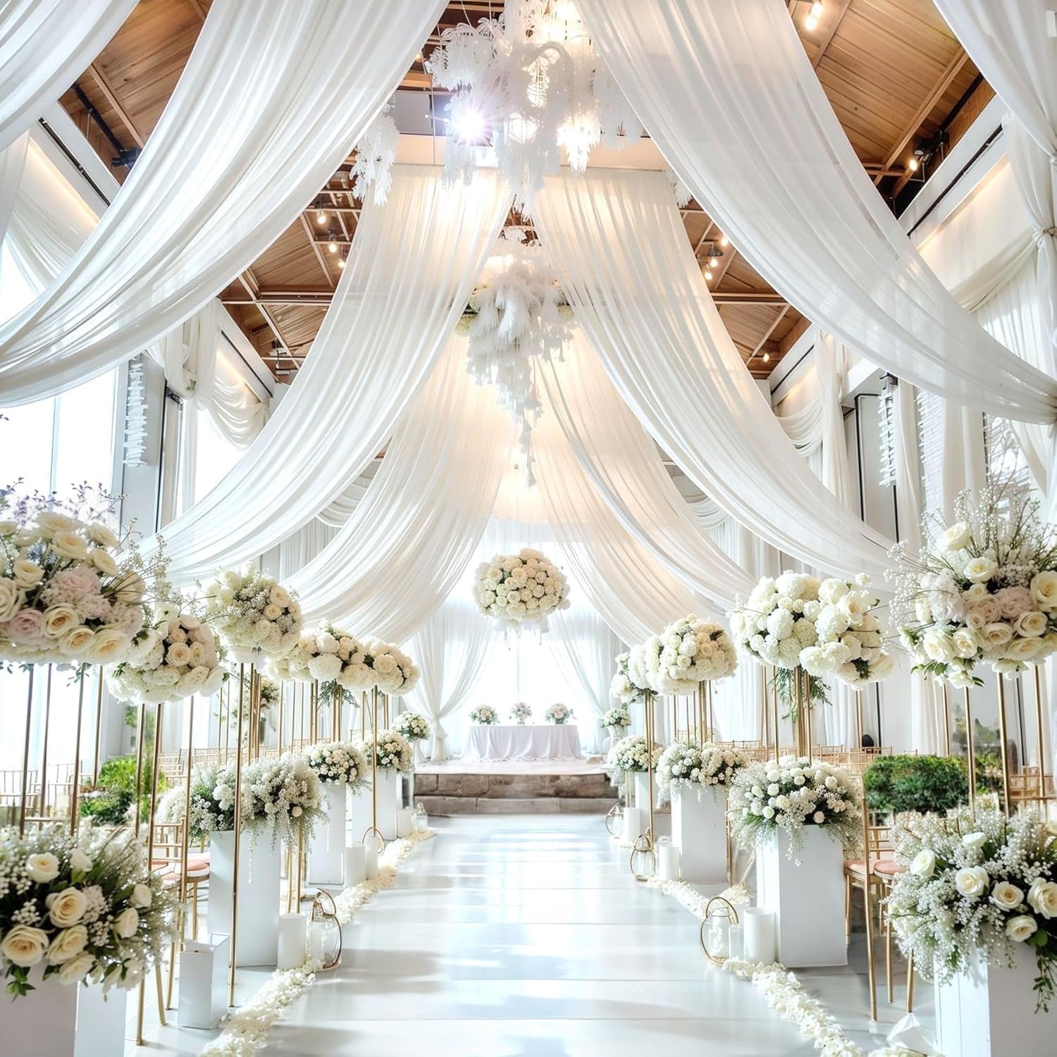 - MULTI-SCENES USES : The drapes made the entire wedding come together, perfect for your indoor outdoor baby shower parties, bridal shower, baby showers, holiday parties,wedding, family gatherings, dessert tables, candy tables.White wedding arch drape fabric can also be used on a canopy, chuppah, arbor or altar.This wedding arches for ceremony is perfect for creating beautiful pleats or letting it float off the floor, adding a very delicate, soft, beautiful touch to your stage at any event.