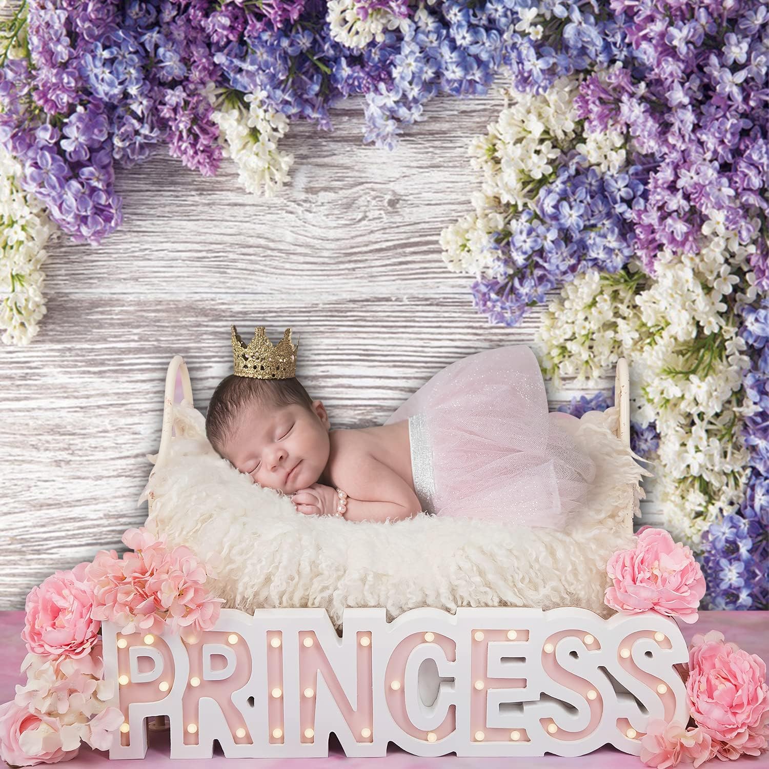 Purple Flower Wood Backdrop LFEEY 10x10ft Newborn Baby Shower Wooden Backdrop Photography Lilac Bloom Bouquet Wood Panel Wall Girls Adults Portrait Background Party Events Decoration Photo Studio Prop