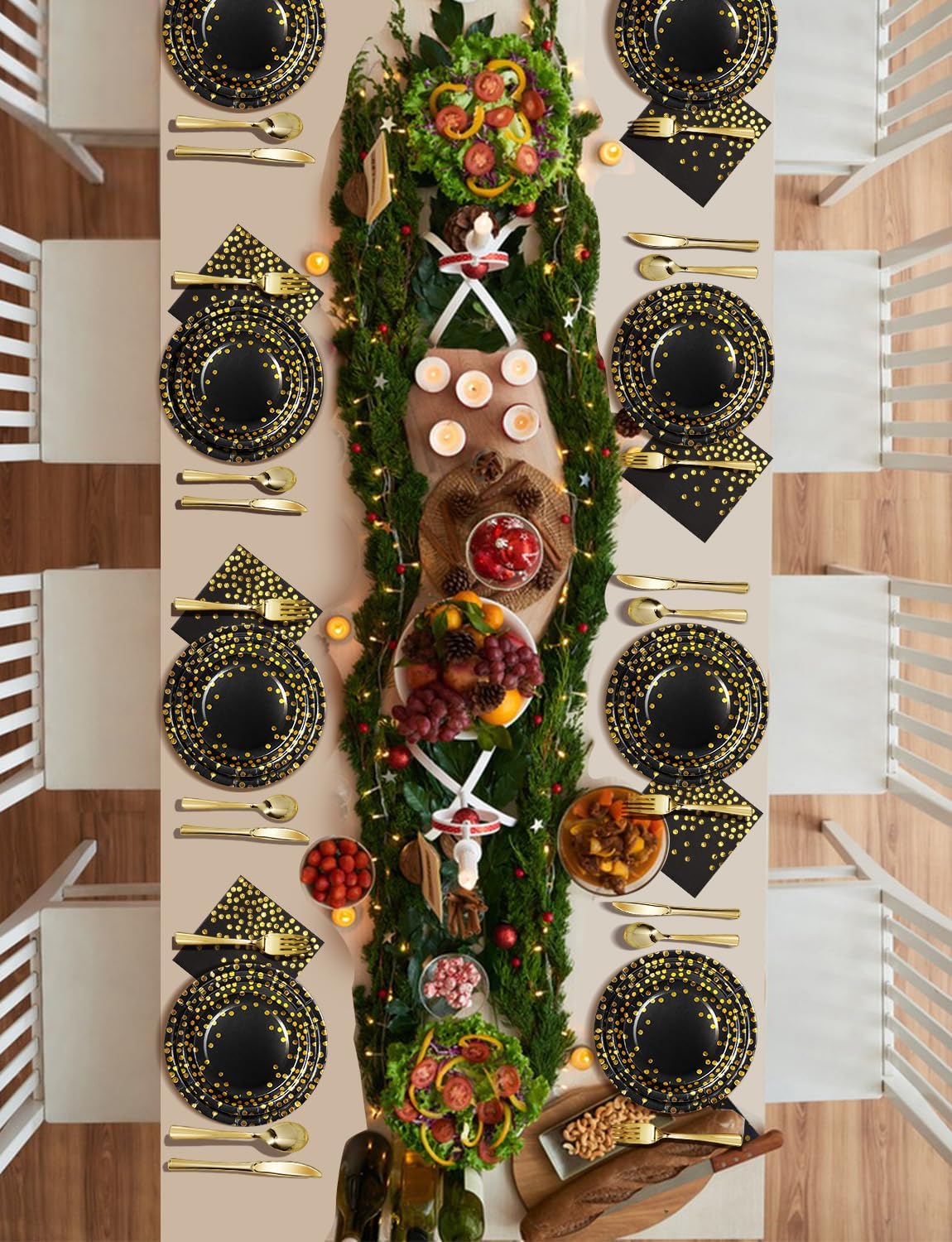 - 🍰【High Quality and Elegant Design】Our party supplies pack features a black background and gold foil polka dot pattern, adding a touch of sophistication to your event. Made of 100% food-grade paper, our plates are sturdy and can hold heavy foods without bending or breaking. All party dinnerware are made of BPA-free, non-toxic, and tasteless plastic that is very strong and won't bend or break.