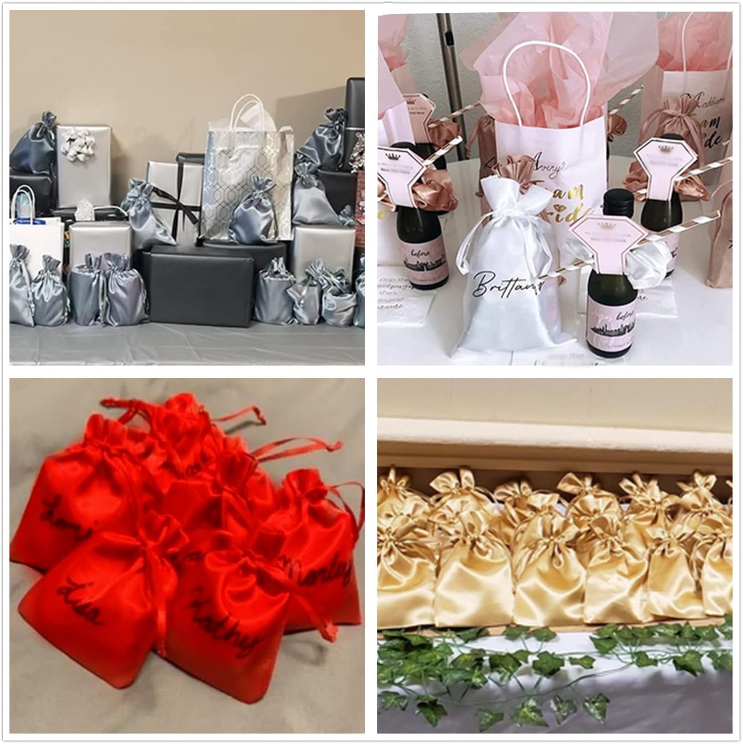 - π Multipurpose: These silk satin gift bags are great for any number of occasions, Perfect to use as baby shower gift bags, wedding favor bags, Valentine's Day gift bags, candy bags,Christmas gift bags, soap bags, bath bomb bags, jewelry bags even on a ordinary special day trying to make your gift bag looks amazing. Also you can use them as dice bags, tarot bags or tarot pouches.