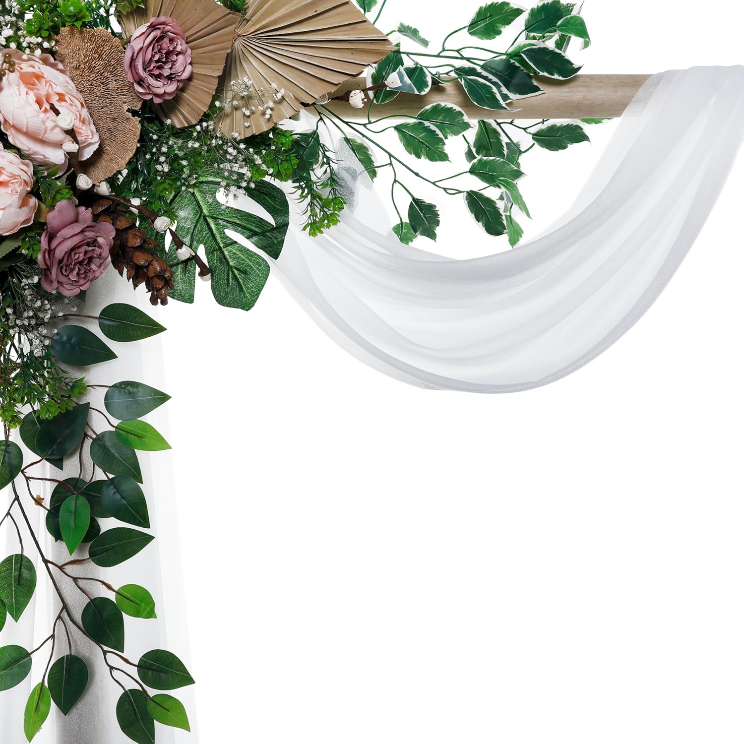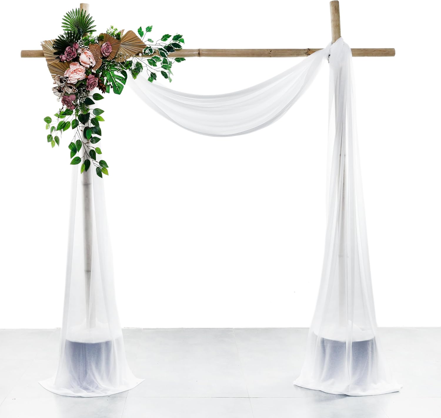 VDS Pack of 1 Panel (30 Inch X 30 Feet) Wedding Arch Draping Fabric Sheer Chiffon Fabric Drapery for Wedding Ceremony Reception Swag Backdrop Canopy Chuppah ARBO Altars Decoration (White)