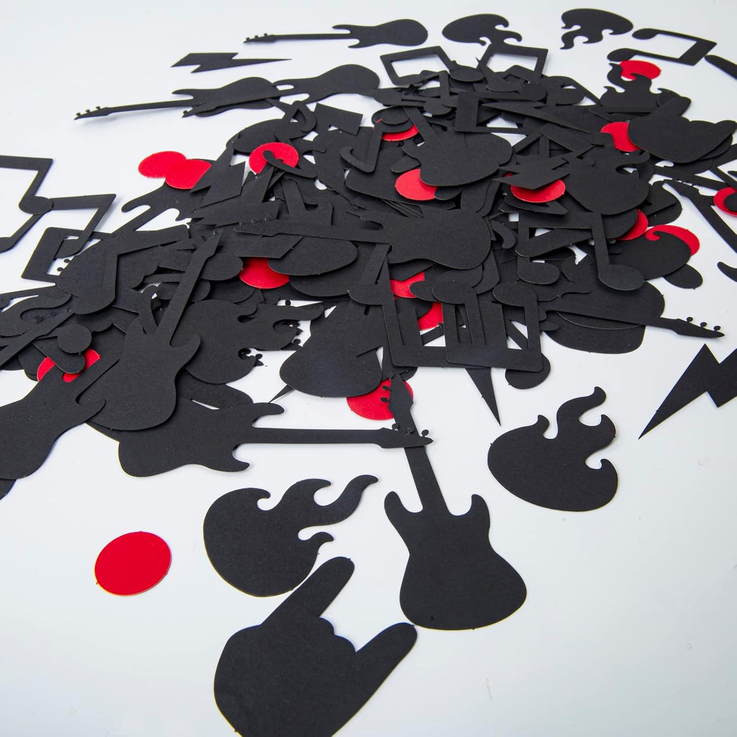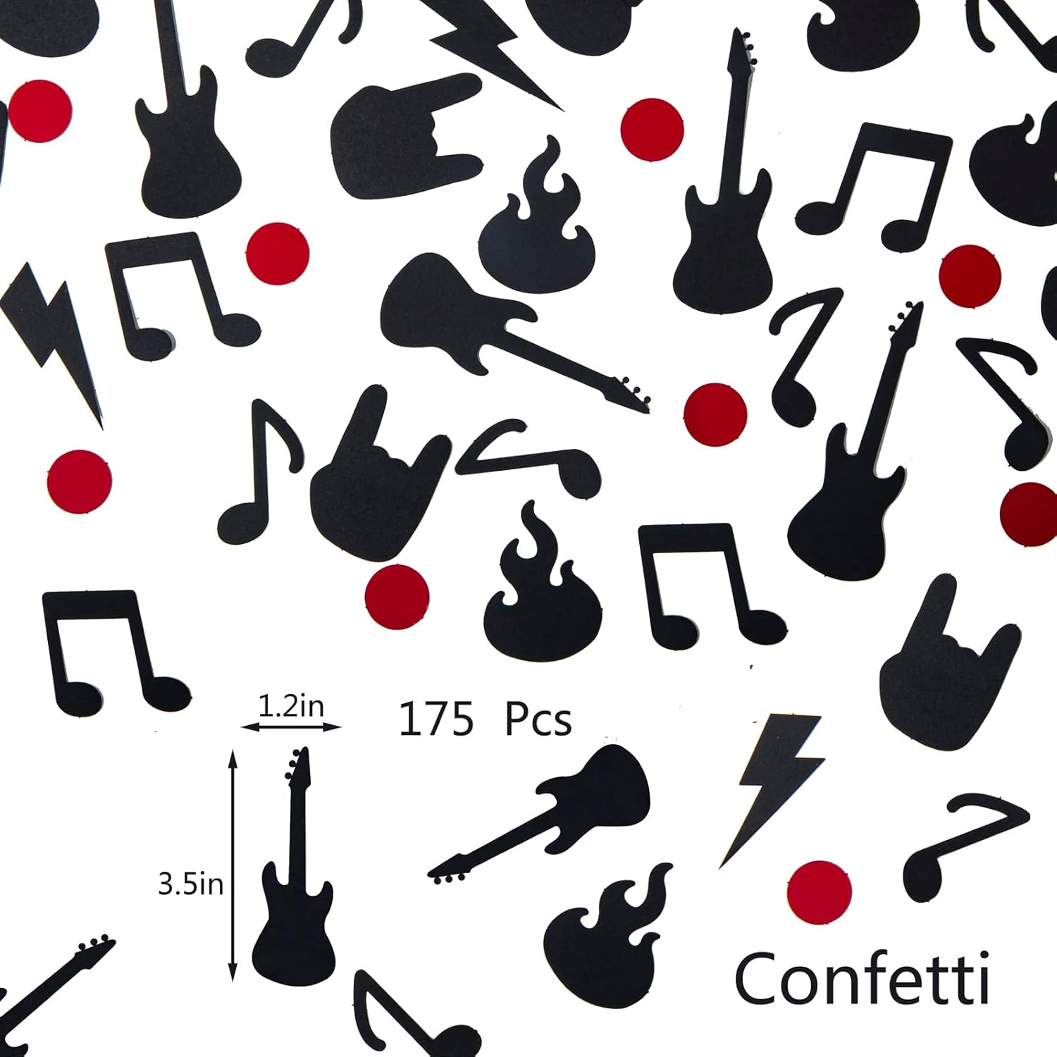 - ROCK N' ROLL CONFETTI PARTY DECORATIONS - Get ready to rock and roll with the Rock N' Roll Confetti Party Decorations. This set includes 175 pieces of confetti, featuring various rock and roll-themed designs such as music notes, guitars, gestures, and lightning. It's the perfect addition to any rock and roll-themed birthday party, wedding, or other special occasions.