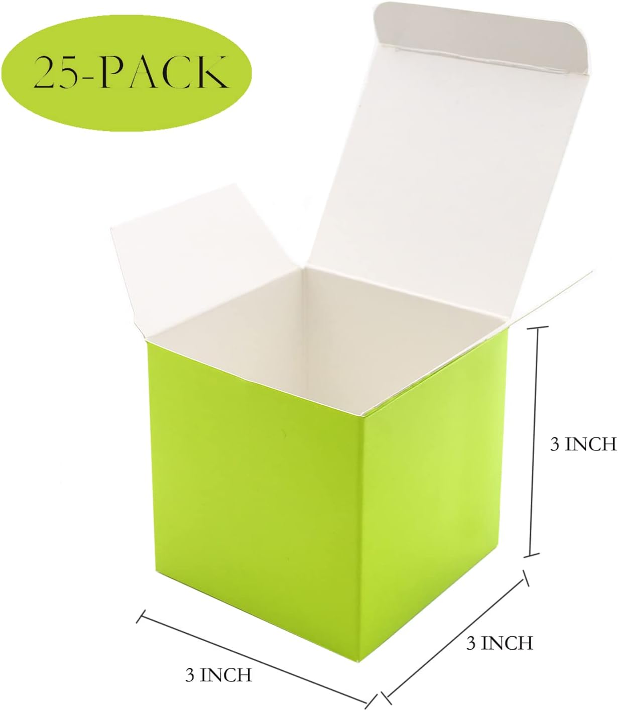Oletx 25 Pcs Green Paper Gift Boxes, Small Candy Boxes Bulk, 3x3x3 inch Gift Box with Lids, Goodie Treat Boxes for Party Favors, Birthday Gifts, Wedding Gifts