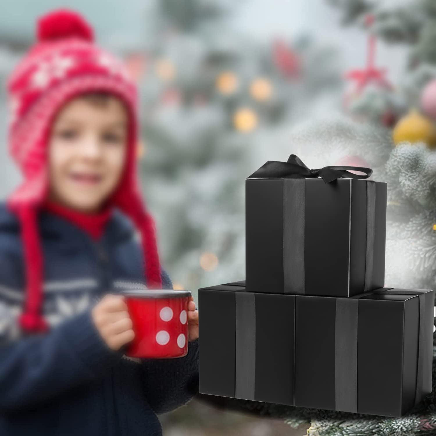 COTOPHER Small Gift Boxes 25 Pack 6x6x6 inches Black Gift Boxes with Lids for Gifts, Crafting, Wedding Party Favor, Cupcake Boxes, Candy, Bridesmaids Proposal Box with Ribbons and Stickers