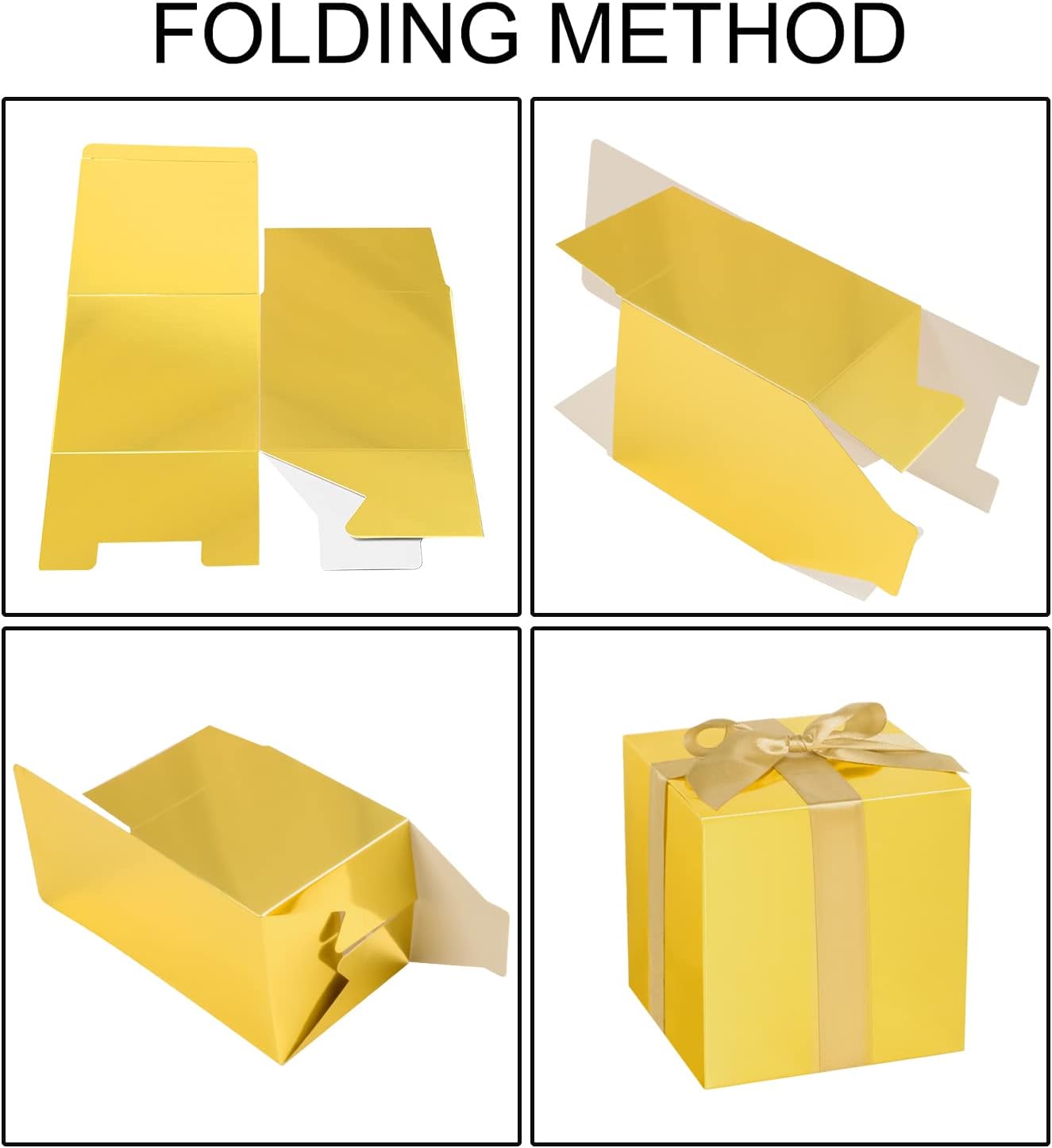 - What You'll Get: 25pcs Gold favor boxes,25pcs Gold ribbons and 25pcs Thank you stickers. you can tie a bow knot on top, which will be more elegant and romantic for party.