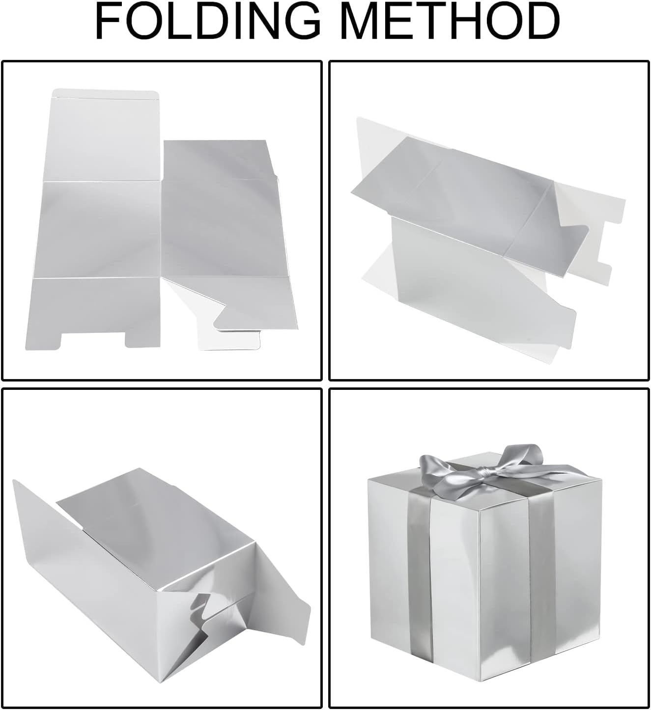 COTOPHER Small Gift Boxes 25 Pack 5x5x5 inches Silver Gift Boxes with Lids for Gifts, Crafting, Wedding Party Favor, Cupcake Boxes, Candy, Bridesmaids Proposal Box with Ribbons and Stickers