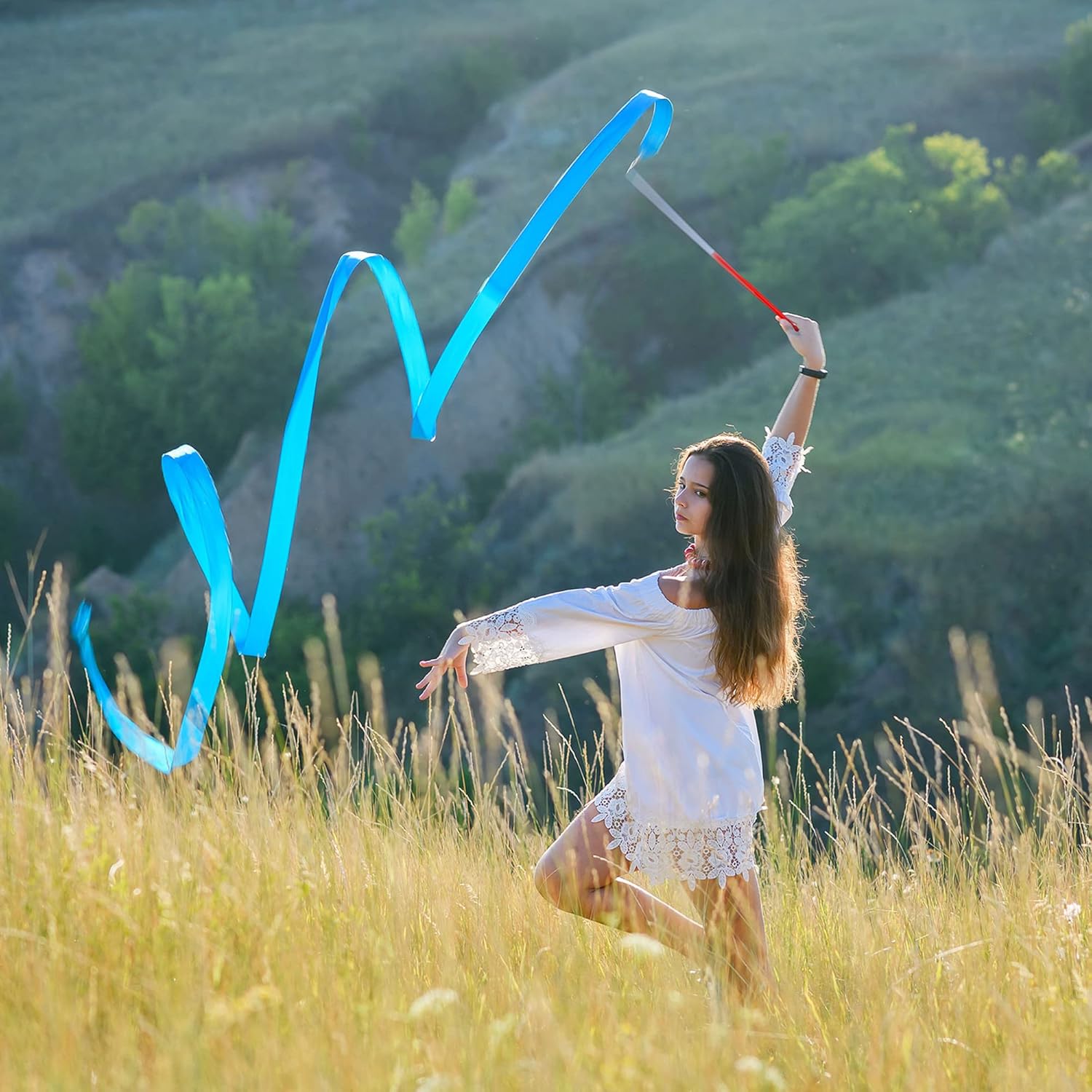 - Quality Material: the rhythmic gymnastics ribbon is made of soft satin material, lightweight and wear resistant, beautiful and bright colors printed on the surface will not easily fade; The ribbon stick is sturdy and hard to break, can serve you for a long term; The handle does not slip easily when twirling the ribbon; Metal buckle at the top of the stick provides flexible rotation for the ribbon