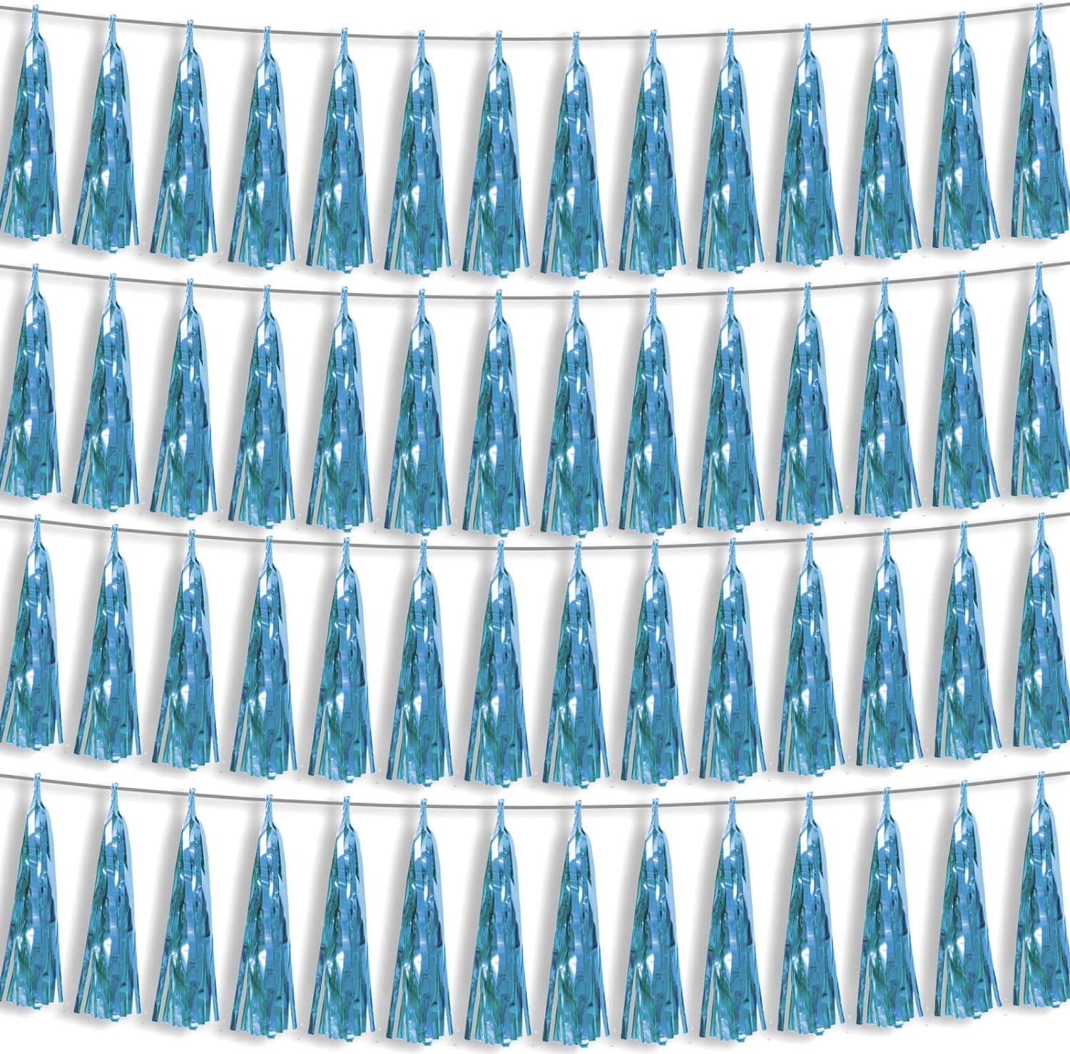 - 【Perfect Party Decoration】The light blue tinsel garlands are designed in a metallic Fringe, bright, and beautiful, at the same time, they shine in the sun, and these gorgeous tassel garlands create a wonderful backdrop or centerpiece for your party space. and bring you, your family, and your friend's good Visual effects. your party many emotional and touching moments where a lot of pictures will be taken and everybody will have a wonderful time together.