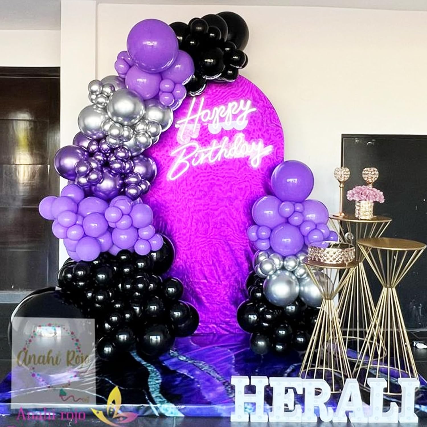 - 50 PCS LATEX BALLOONS: The purple black balloon packet consists of 14 pcs metallic purple balloons, 8 pcs silver metallic balloons, 14 pcs purple balloons, 16 pcs black balloons, and 4 pcs confetti purple balloons with 1pc ribbon.They are ideal for adding extra fun to any party event.