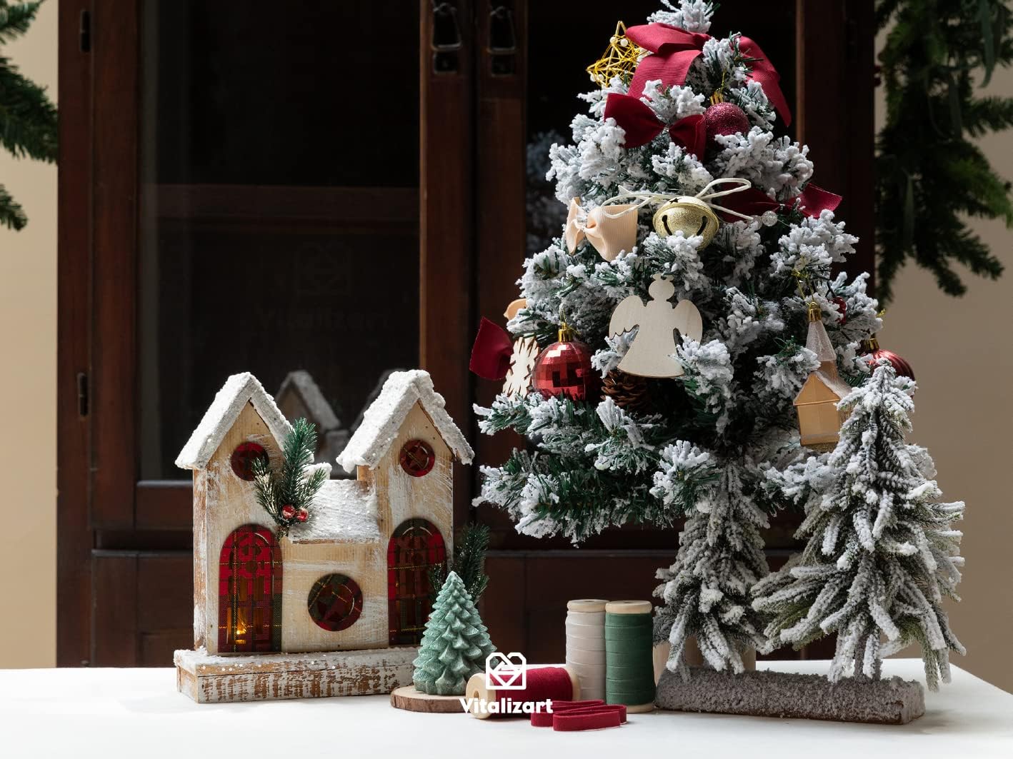 Vitalizart Christmas Velvet Ribbon Set 3/8" x 15 Yd Wooden Spool Fabric Trim 3 Rolls * 5 Yd for Christmas Wreath Decoration Handmade Craft Ornaments Gift Wrapping & Bow Making