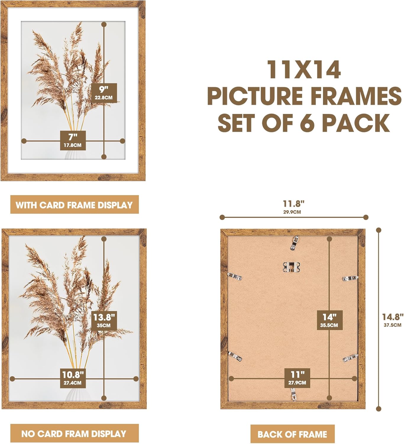 TWING 11x14 Picture Frames Set of 6,Display Photos 8x10 with Mat or 11x14 without Mat,Home Decorative Wall Gallery Picture Photo Frame Wood Brown,Walnut