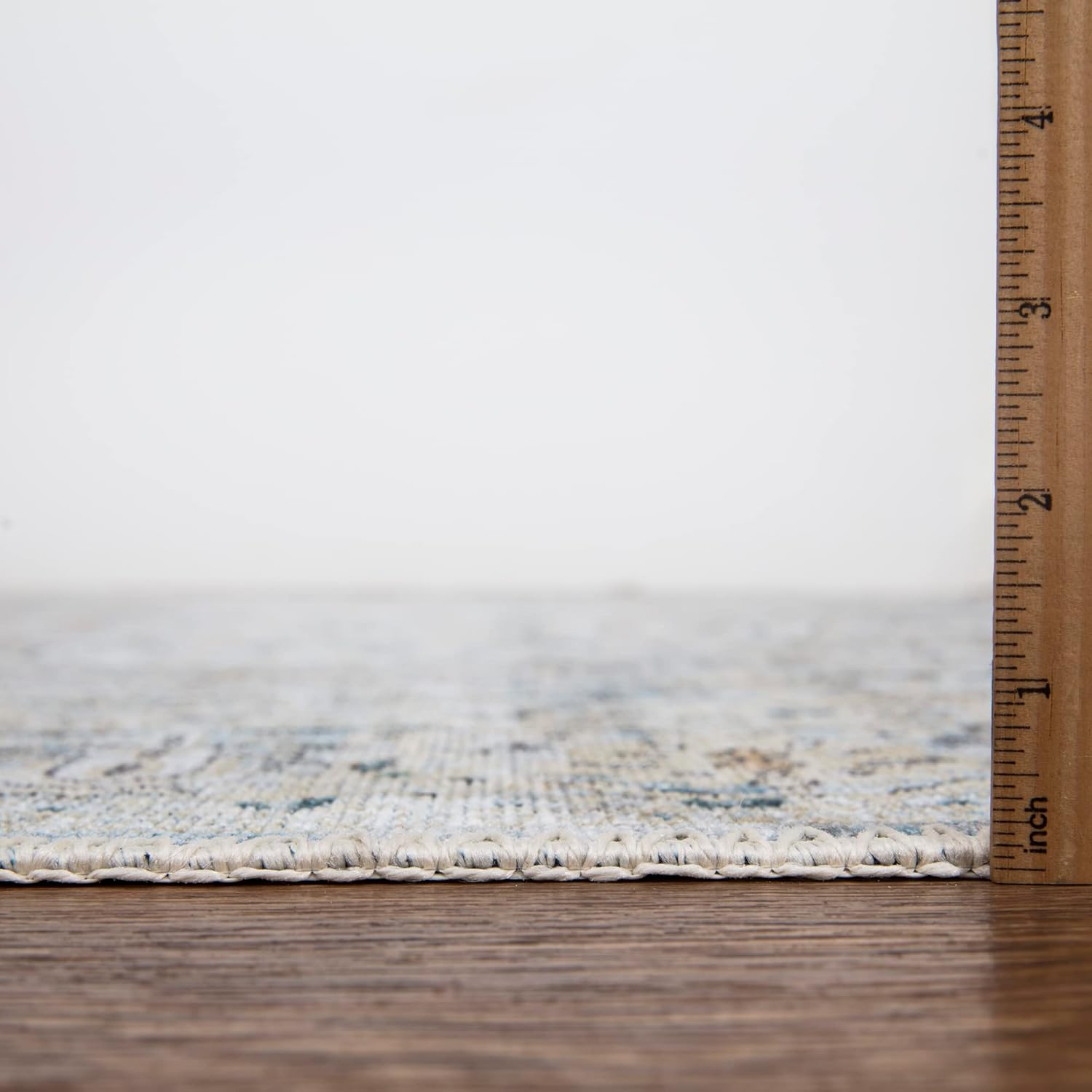 Bloom Rugs Washable Non-Slip 4' x 6' Rug - Cream/Light Blue/Teal Traditional Medallion Area Rug for Living Room, Bedroom, Dining Room, and Kitchen - Exact Size: 4' x 6'