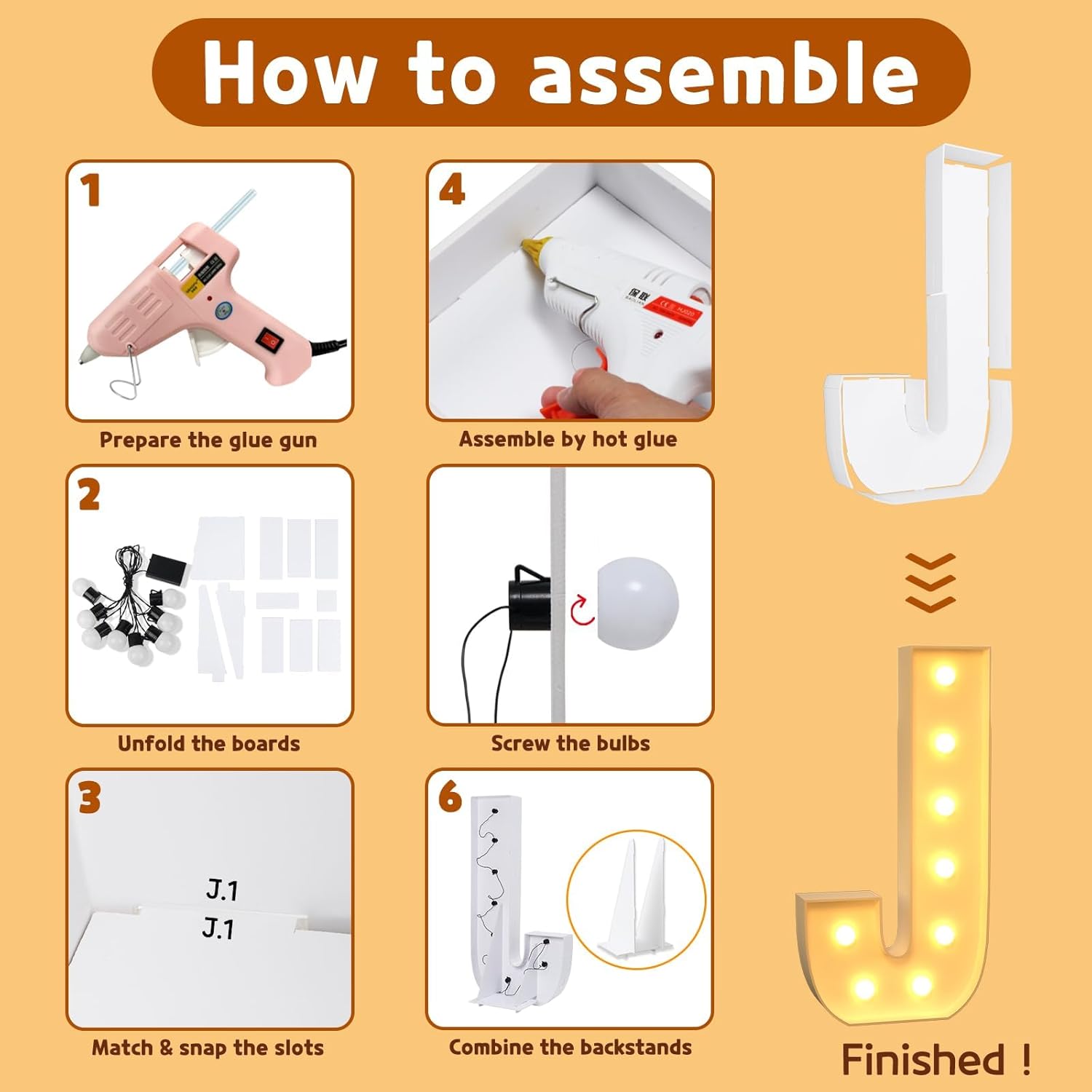 - Package Includes: A set of light up letters for party containing the pre-cut letter frames, a light string with several bulbs and assemble guiding manual. ( Noted: Glue gun and batteries are not included