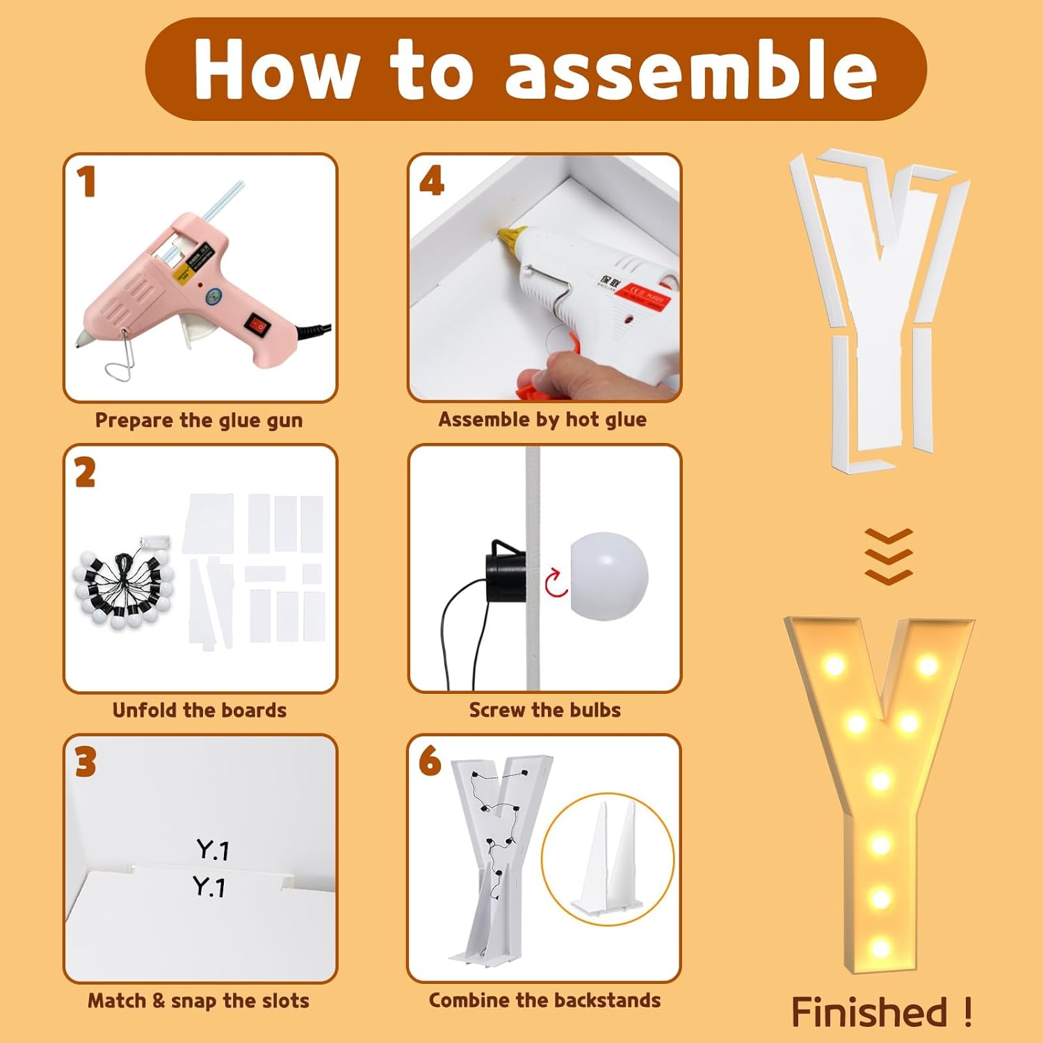 - Package Includes: A set of light up letters for party containing the pre-cut letter frames, a light string with several bulbs and assemble guiding manual. ( Noted: Glue gun and batteries are not included