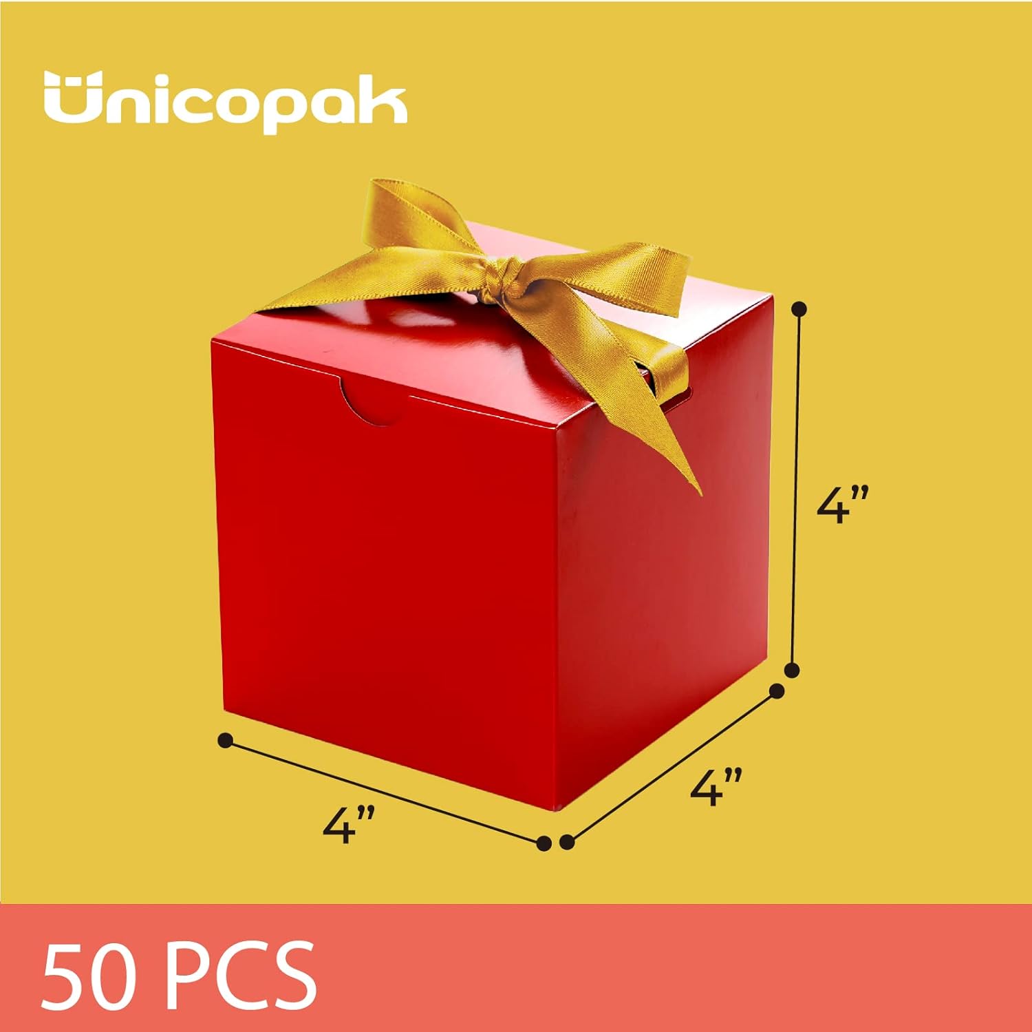 UnicoPak 4x4x4 Christmas Red Gift Boxes 50 Pcs, Holiday Gift Boxes Small Gift Boxes with Lids for Gift Ornaments, Candles, Mugs, Crafting, for Birthday, Party, Christmas Boxes for gifts