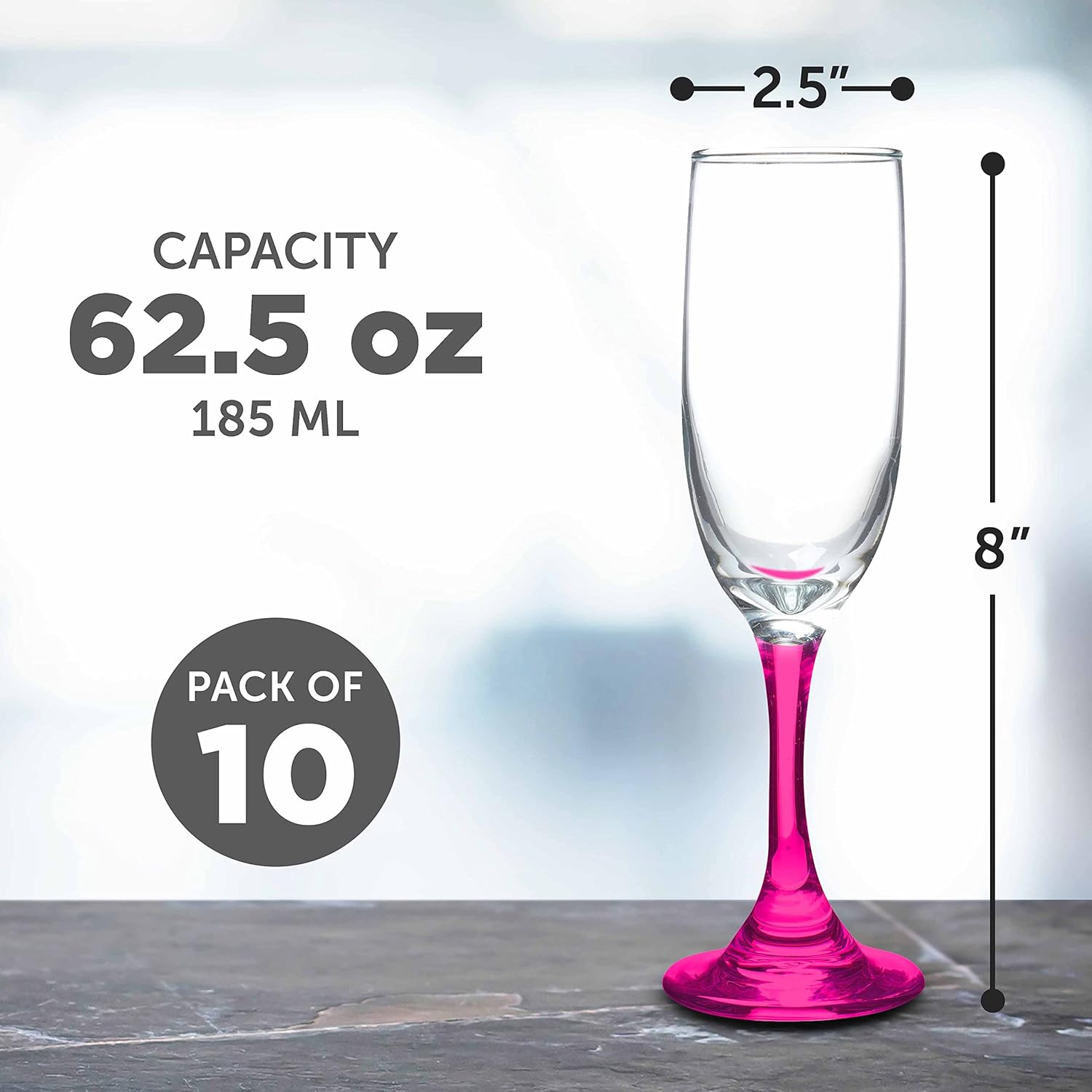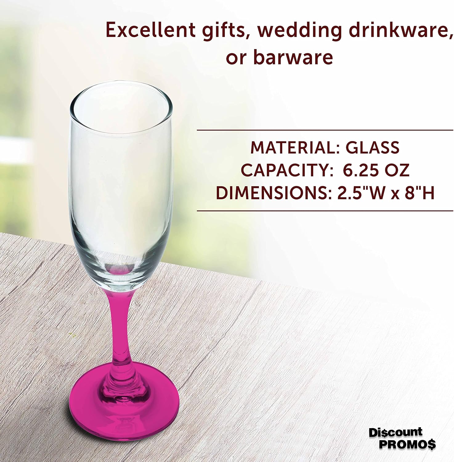 DISCOUNT PROMOS Premiere Champagne Flutes 6.25 oz. Set of 10, Bulk Pack - Elegant Drinkware for Weddings, Events, & Promotional Gifts - Pink