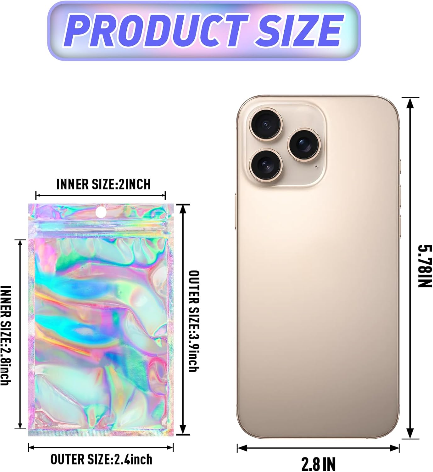 - 【Clear Window Holographic Bags】-Shiny smell proof holographic bags,shows beautiful rainbow color when lights refract in, perfect for display your sample items,give a professional impression to your customer!Clear Window mylar bags allows you quickly see what insides.